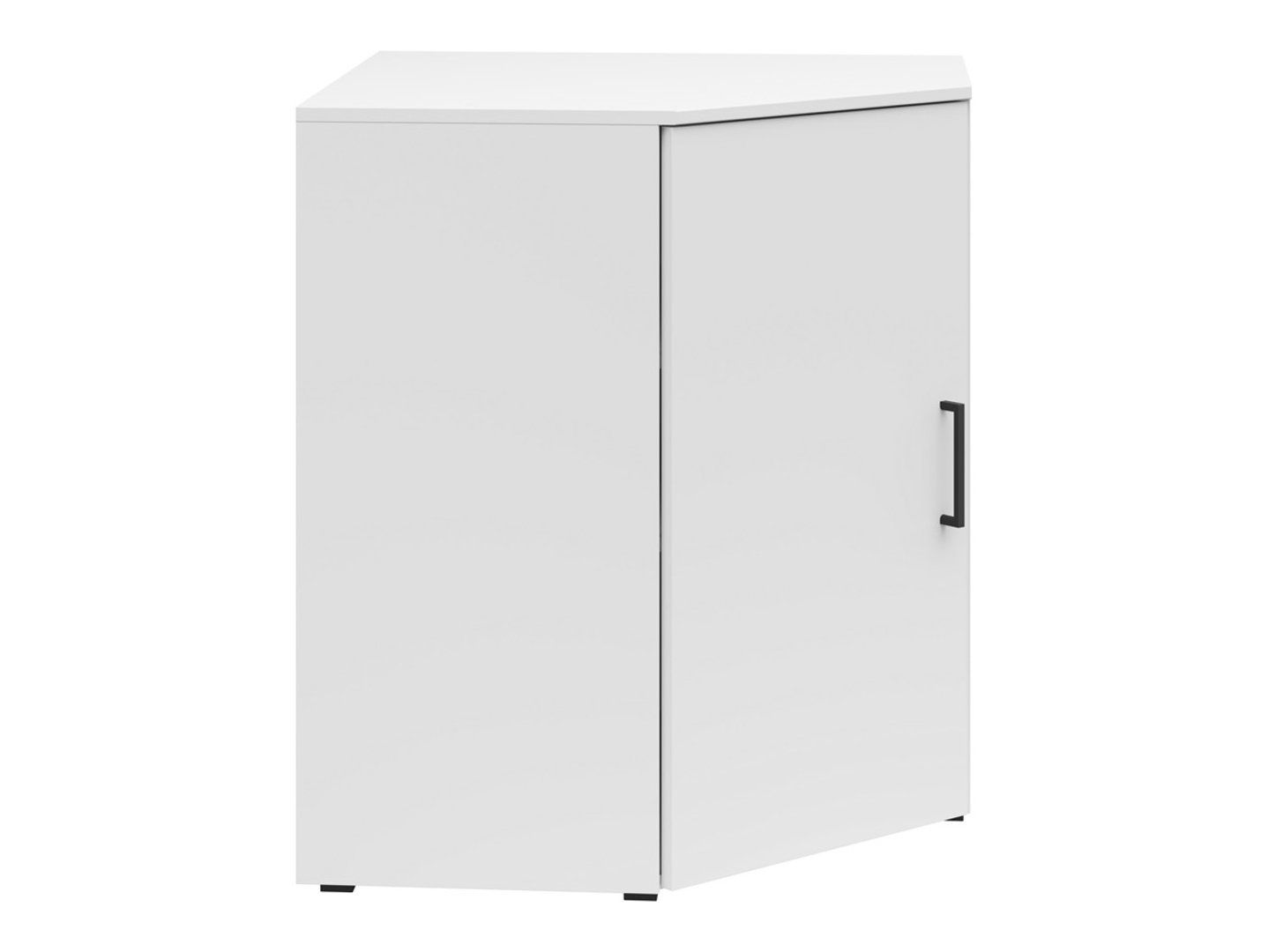 The MultiDo corner shelf with doors – a strong point in your interior design. The MultiDo corner shelf with doors is the perfect solution when you want to cleverly organize a small space. Thanks to two spacious shelves hidden behind the doors, you can easily store underwear, documents, bedding, and other small items you want to always have at hand. The stable top is the perfect place for decorations such as photos, plants, or candles, adding a cozy character to your interior. Special features: Corner design: maximum use of difficult-to-furnish spaces, ideal for small rooms. Two spacious shelves behind lockable doors: offering plenty of space for storing underwear, bedding, documents, and other everyday items. Versatile setup: The shelf can be placed on the floor, used as an extension, or placed on top of another shelf, providing a wide range of arrangement options. Flexible door opening: Thanks to ergonomic handles and the option of opening the door to the right or left, the chest of drawers ensures comfort of use and freedom of setup. Three subdued colors: White, artisan oak, and graphite allow you to easily match the shelf to your interior style. Modular MultiDo system: The shelf is part of a modular system, allowing you to combine it with other elements in this series and create personalized arrangements. Additional shelves: as an optional extra, you can purchase a set of two shelves, thanks to which you can expand your storage space and customize the shelf to your needs. Summary: The MultiDo corner shelf with doors is a practical and stylish piece of furniture that works perfectly in small rooms and difficult-to-use corners. Thanks to its versatility and the ability to combine with other furniture from the MultiDo collection, you can easily create a functional and aesthetic arrangement. Choose from three available colors and enjoy a perfect match for your interior! View the MultiDo System Catalog and discover all its configuration options.