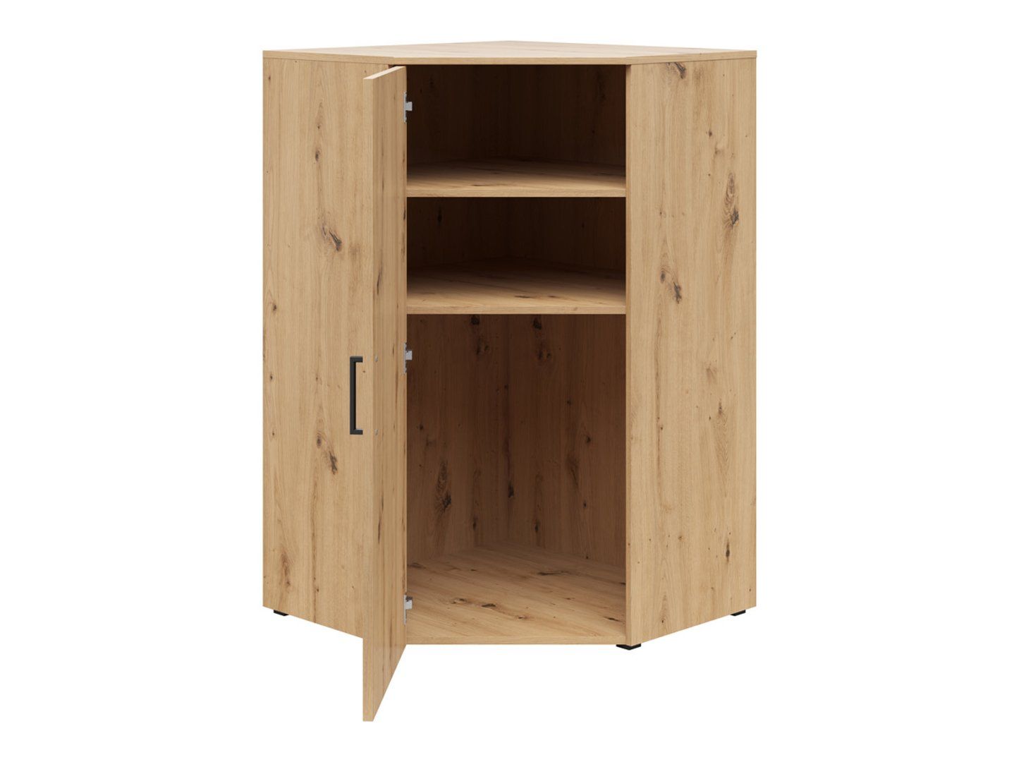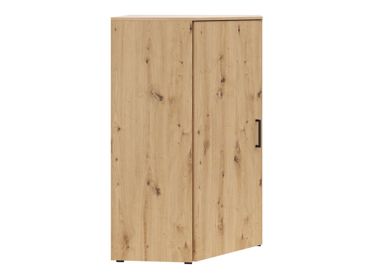 The MultiDo corner shelf with doors – a strong point in your interior design. The MultiDo corner shelf with doors is the perfect solution when you want to cleverly organize a small space. Thanks to two spacious shelves hidden behind the doors, you can easily store underwear, documents, bedding, and other small items you want to always have at hand. The stable top is the perfect place for decorations such as photos, plants, or candles, adding a cozy character to your interior. Special features: Corner design: maximum use of difficult-to-furnish spaces, ideal for small rooms. Two spacious shelves behind lockable doors: offering plenty of space for storing underwear, bedding, documents, and other everyday items. Versatile setup: The shelf can be placed on the floor, used as an extension, or placed on top of another shelf, providing a wide range of arrangement options. Flexible door opening: Thanks to ergonomic handles and the option of opening the door to the right or left, the chest of drawers ensures comfort of use and freedom of setup. Three subdued colors: White, artisan oak, and graphite allow you to easily match the shelf to your interior style. Modular MultiDo system: The shelf is part of a modular system, allowing you to combine it with other elements in this series and create personalized arrangements. Additional shelves: as an optional extra, you can purchase a set of two shelves, thanks to which you can expand your storage space and customize the shelf to your needs. Summary: The MultiDo corner shelf with doors is a practical and stylish piece of furniture that works perfectly in small rooms and difficult-to-use corners. Thanks to its versatility and the ability to combine with other furniture from the MultiDo collection, you can easily create a functional and aesthetic arrangement. Choose from three available colors and enjoy a perfect match for your interior! View the MultiDo System Catalog and discover all its configuration options.