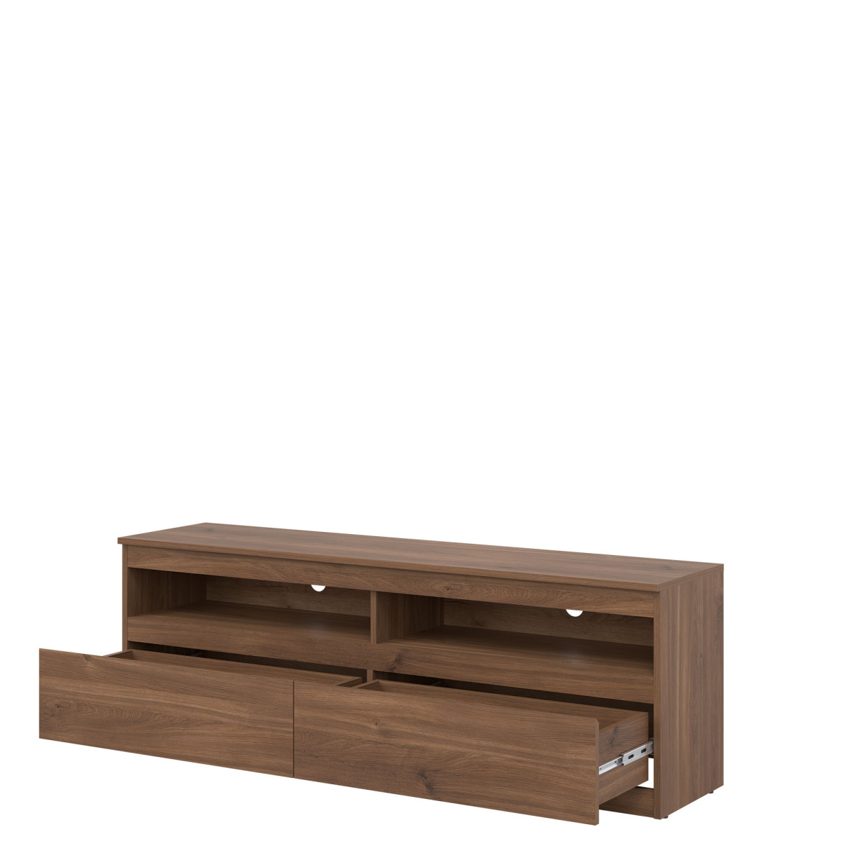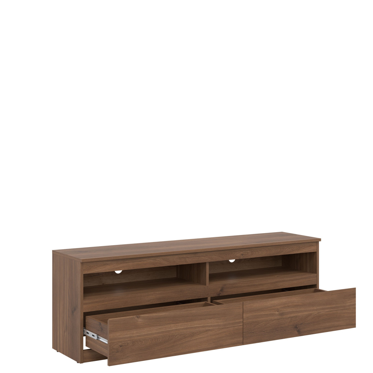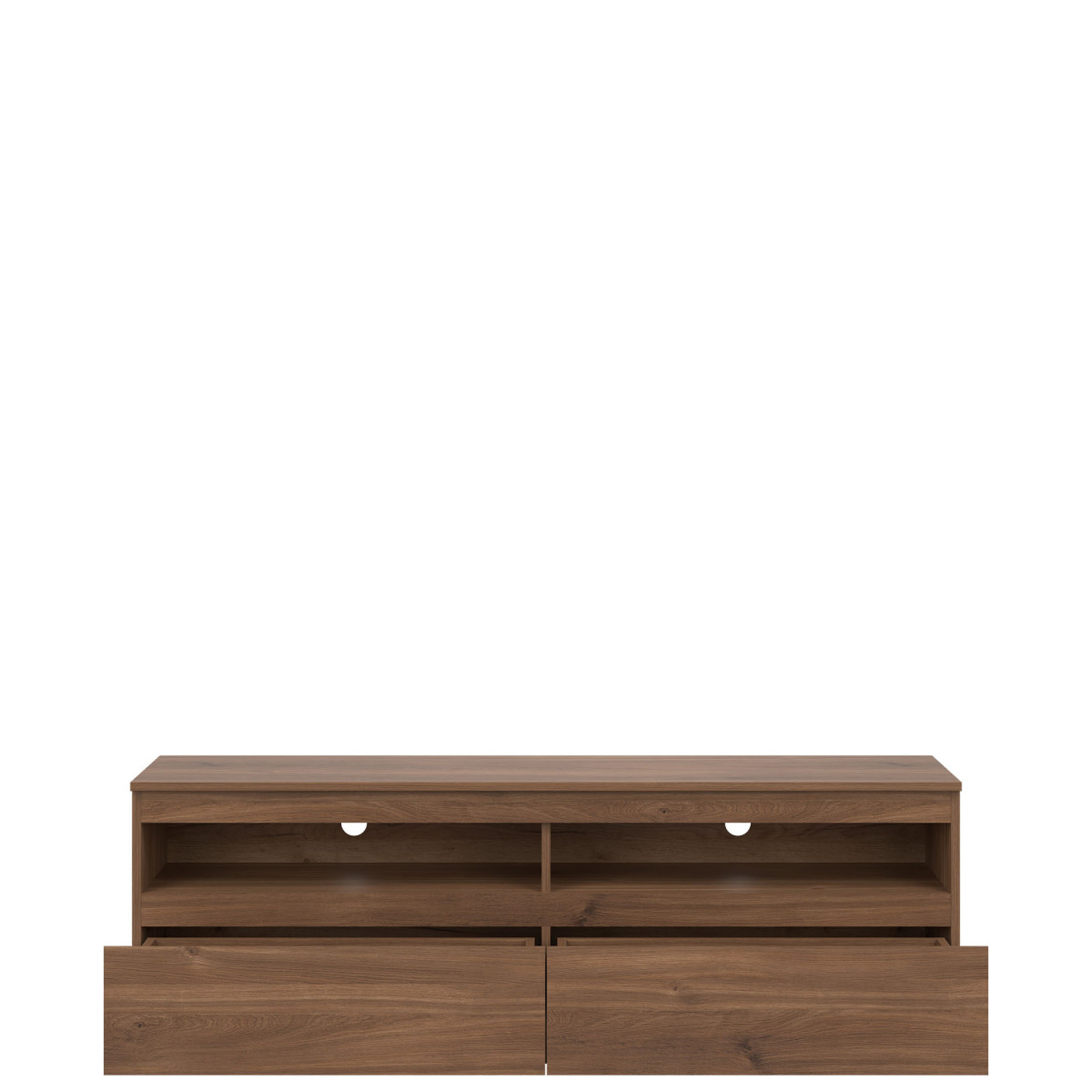 Width 150.5 cm Depth 37 cm Height 52 cm Product weight with packaging 39.25 Manufacturer’s code / symbol RM01 Collection name REMI Number of product packages 2 Style Modern Equipment Assembly instructions / assembly accessories Assembly For self-assembly Tabletop material / type / thickness laminated chipboard 16 mm Body material / type / thickness Laminated chipboard 16 mm Rear wall visible part color white Front material / type / thickness Laminated chipboard 16 mm Front handle / design / color milled Hole for RTV cables 50 mm x 2 Drawer guides Ball bearing Leg / design / color Plinth Number of drawers 2