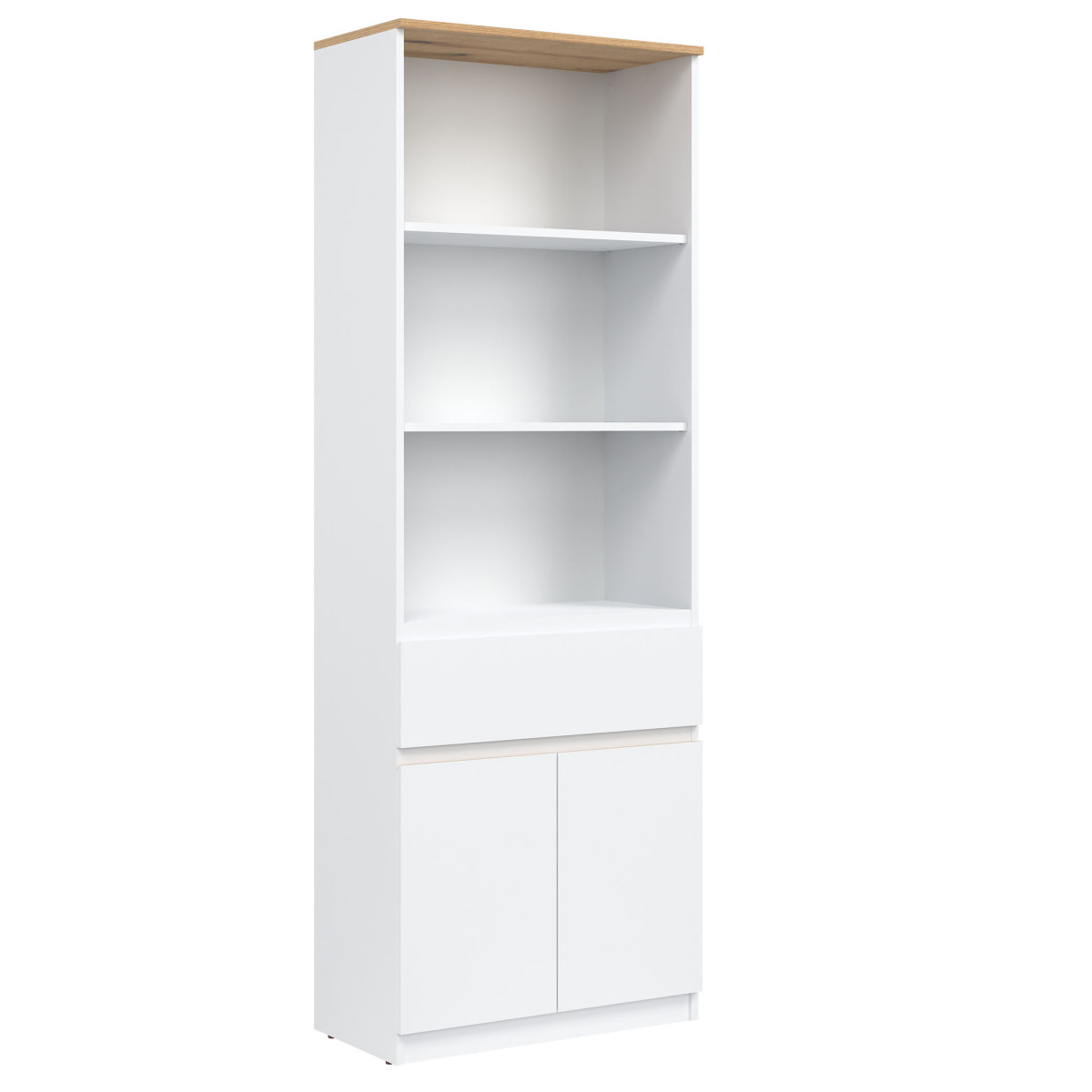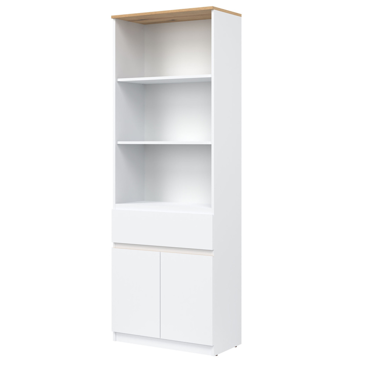 Width 68.5 cm Depth 35 cm Height 194 cm Product weight with packaging 40.95 kg Manufacturer’s code / symbol RM09 Collection name REMI Number of product packages 2 Style Modern Equipment Assembly instructions / assembly accessories Assembly For self-assembly Tabletop material / type / thickness laminated chipboard 16 mm Body material / type / thickness laminated chipboard 16 mm Shelf material / type / thickness laminated chipboard 16 mm Shelf quantity 3 Front material / type / thickness laminated chipboard 16 mm Front handle / design / color milling Drawer runners ball bearing Leg / design / color PLINTH Number of drawers 1