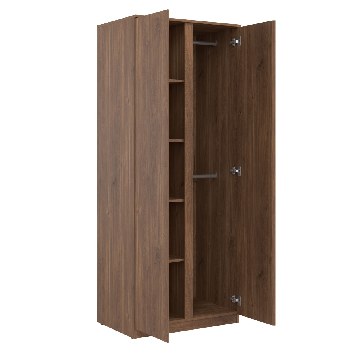 Width 78 cm Depth 52 cm Height 194 cm Product weight with packaging 69.2 kg Manufacturer’s code / symbol RM10 Collection name REMI Number of product packages 3 Style Modern Equipment Assembly instructions / assembly accessories Assembly For self-assembly Tabletop material / type / thickness 16 mm laminated chipboard Body top material / type / thickness 22 mm laminated chipboard Shelf material / type / thickness 16 mm laminated chipboard Shelf quantity 3 Front material / type / thickness 16 mm laminated chipboard Front handle / material / color milled Leg / material / color plinth Body equipment Hanger bar as standard