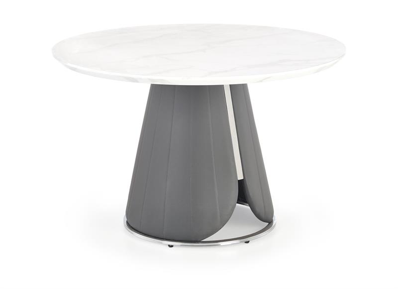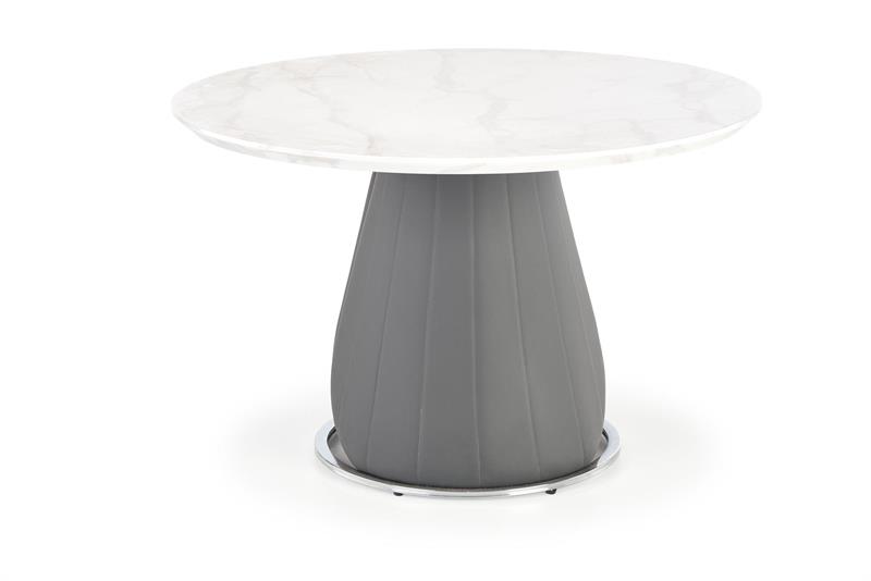 dimensions: fi120/77 cm, material: laminated MDF / chrome steel / eco leather, color: top – white marble, legs – grey