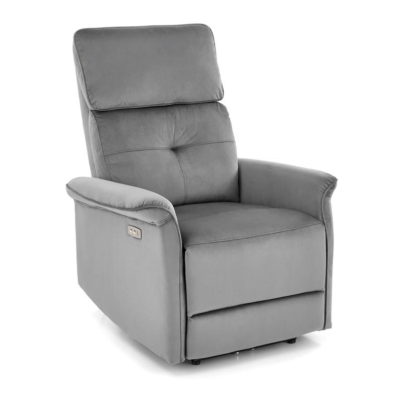 dimensions: 80/90-170/92-108/46 cm, recliner with electric folding function / USB plug, material: velvet cloth color: grey – BLUVEL 14