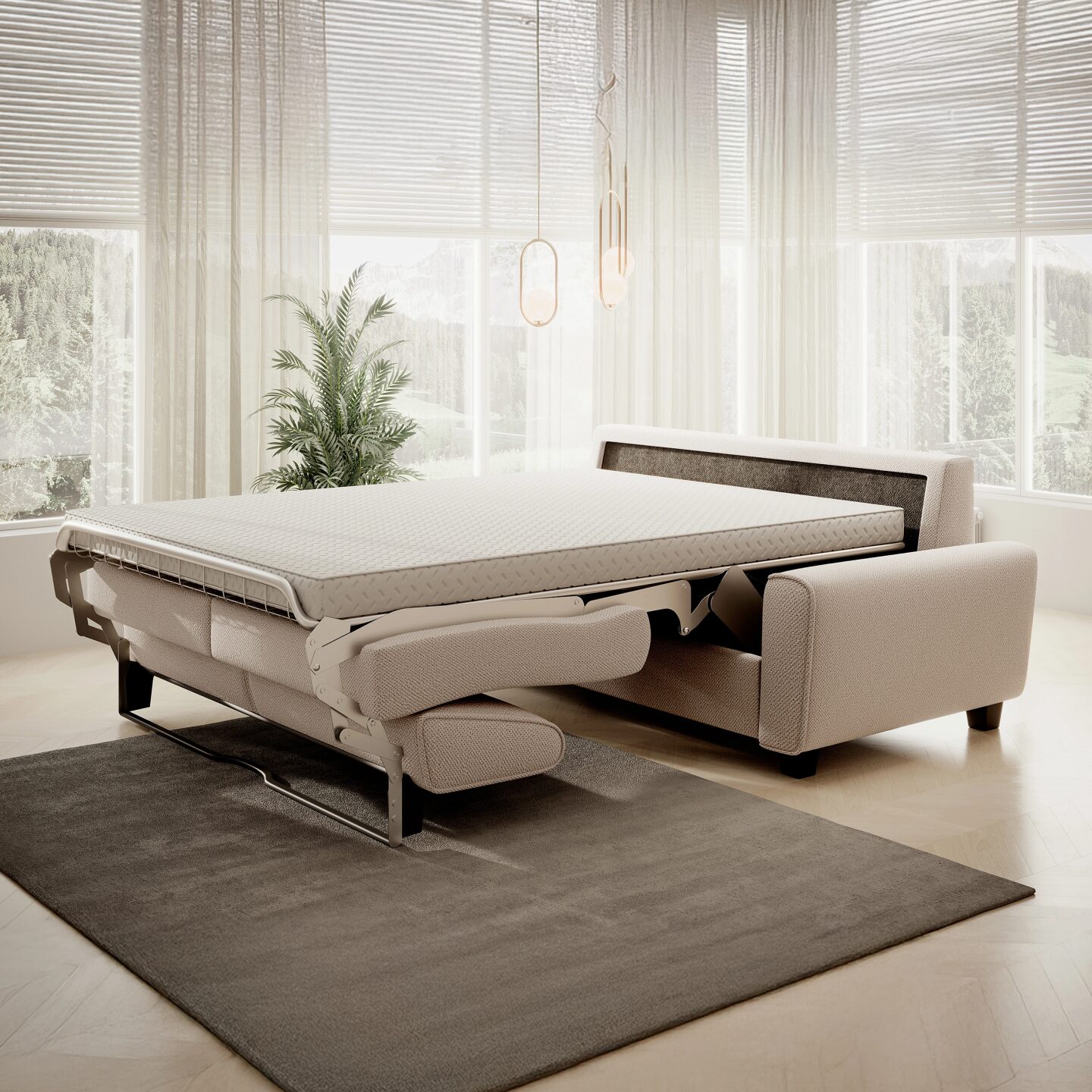 The Capri 140 sofa combines minimalist design with full functionality. Thanks to the Italian Rapid system, it transforms in seconds into a comfortable 140 x 190 cm bed, equipped with a thick, 12 cm mattress. It’s the perfect choice for everyday sleeping in a living room, guest room, or youth room.