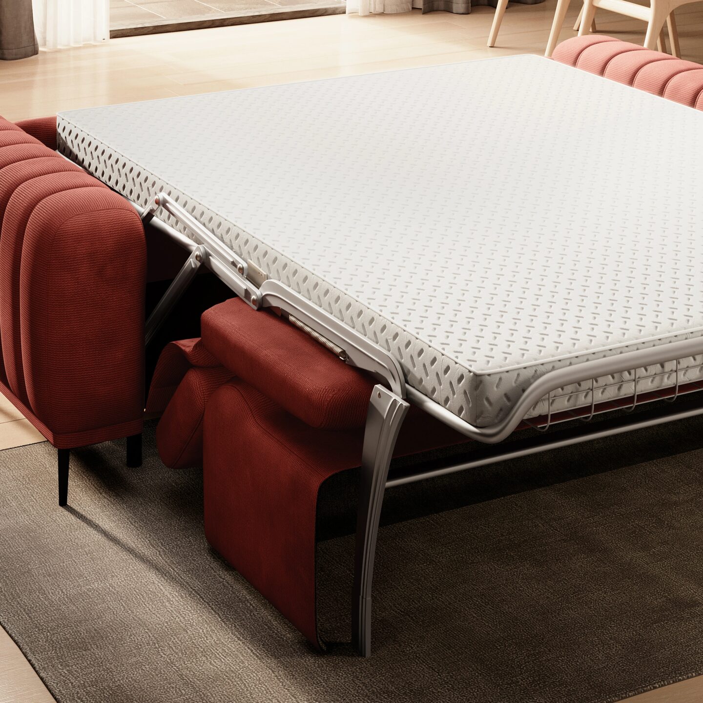 The Gandi sofa is an elegant, modern model that combines minimalist form with high functionality. Its refined stitching, quality craftsmanship, and Italian-inspired folding system make it perfect for both living rooms and guest rooms, offering comfortable sleeping and everyday relaxation.