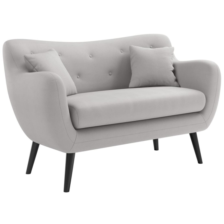 The decorative quilting on the backrest is eye-catching and gives the sofa a refined character. Softly curved armrests blend with the backrest, creating a welcoming space for relaxation. The entire piece rests on wooden legs, which subtly elevate the piece and add a touch of lightness. The George model is available in a wide range of fabrics, allowing you to customize it to your individual needs. Leg colors include wenge, antique cherry, natural beech, natural oak, walnut, silver, and black. This selection allows you to create a color scheme that complements the character of your interior. The exact dimensions are width 137 cm, height 86 cm, depth 81 cm, and seat height 48 cm. The sofa does not have a sleeping function, maintaining its lightness and stability. This piece will be a lasting addition to your living room, enhancing the unique atmosphere of the room.