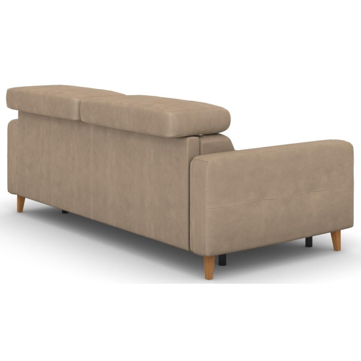 Adjustable headrests allow for the backrest height to be adjusted to individual needs. This allows everyone to find the most comfortable position for reading, watching TV, or a quick nap. This feature enhances comfort not only during extended periods of relaxation but also during everyday use. The sofa rests on tall wooden legs that provide stability and enhance the furniture’s character. Customers can choose from seven color options: wenge, antique cherry, natural beech, natural oak, walnut, silver, and black. This wide selection allows the base to complement a variety of interior designs, from classic to more contemporary.