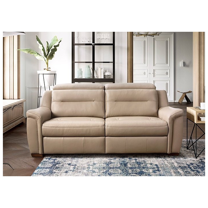 A unique feature is the dual manual relaxation function, allowing for two-seat seating configurations. The high backrest with adjustable headrests provides comfortable back and head support, promoting long periods of relaxation. This makes the sofa an ideal place to recharge after a busy day or for family gatherings.