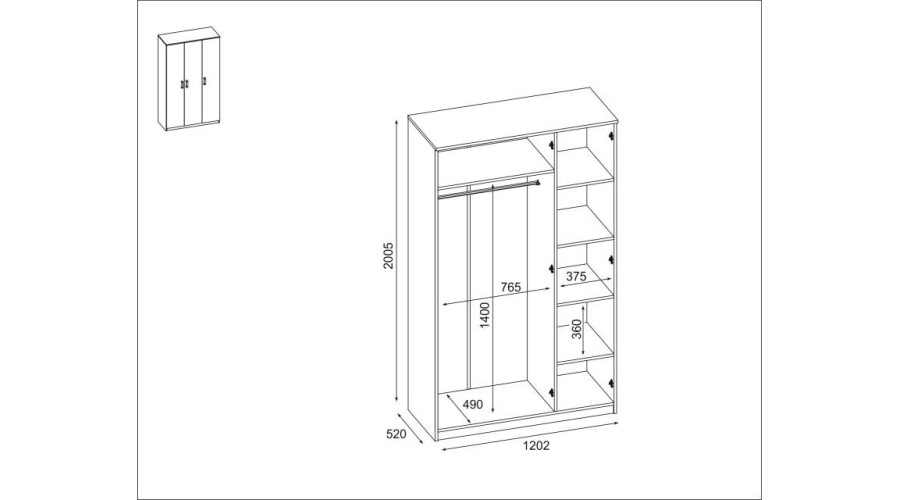 Dimensions: Width: 120 cm Height: 200 cm Depth: 53 cm