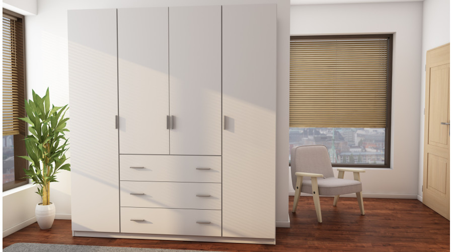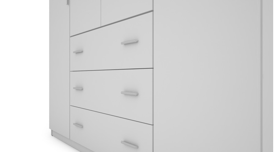 It needs to accommodate most of your clothes and other items, so it’s important to have plenty of shelves and space for hanging. But that’s not all! The 200/220 wardrobe also offers three very large and spacious external drawers, perfect for storing all the accessories you don’t use every day. It’s the perfect solution for storing bed linen, towels, and more. The well-organized interior, wide selection of colors, and unique design make this model incredibly attractive and practical.