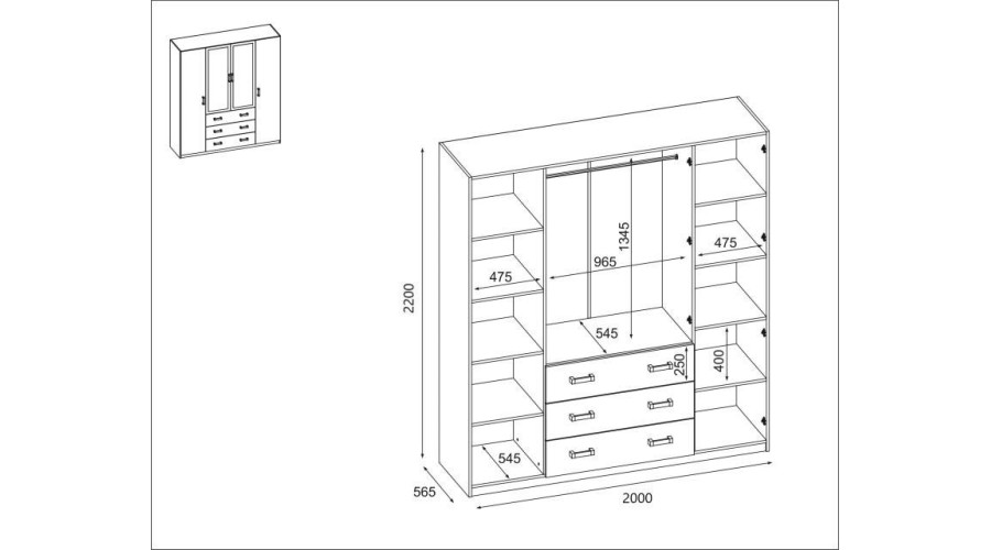 Spinta 200/220 – pakabinimo karnizas, vidinės lentynos, išoriniai stalčiai