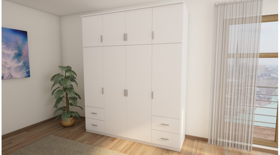 By choosing the 200/242 wardrobe, in addition to hanging rails and shelves, you’ll also have four large, spacious outer drawers. You can store items you don’t use every day. The well-organized interior, wide selection of colors, and unique design make this model incredibly attractive and practical.