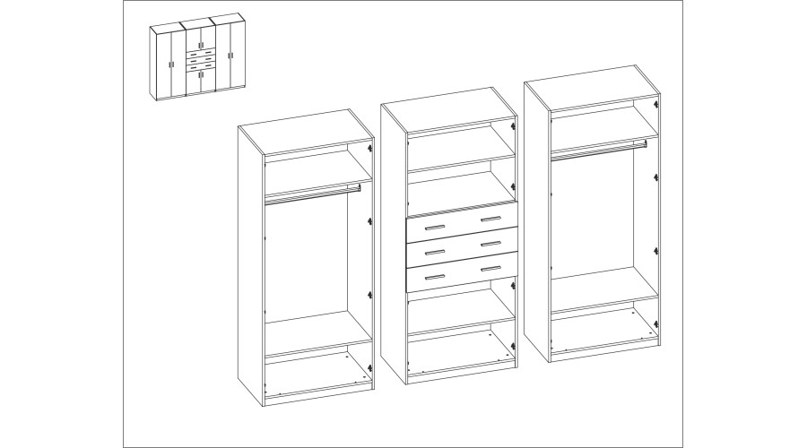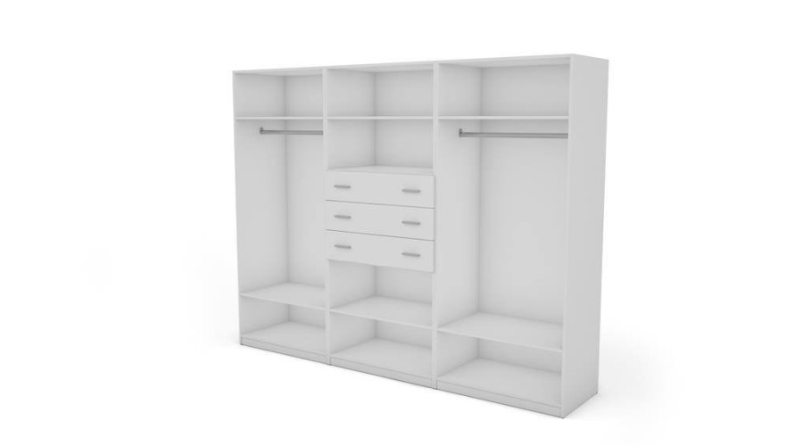 Spinta 270/210 – drabužių kabyklos, vidinės lentynos, išoriniai stalčiai