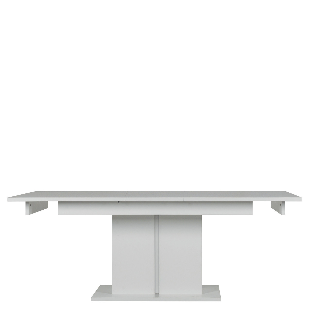 Extendable YES Number of inserts 1 Width 90 cm Length 160 cm Length after unfolding 200 cm Height 76.5 cm Product weight with packaging 72.00 kg Manufacturer’s code / symbol ST02 Name in the b2b system EXTENDABLE TABLE ST02 WHITE set Number of product packages 3 Style UNIVERSAL Equipment Assembly instructions / assembly accessories Assembly For self-assembly Color White Tabletop material / type / thickness 28 mm furniture board Frame material / type / thickness 22 mm furniture board Column material / type / thickness 16 mm furniture board Column base material / type / thickness 28 mm furniture board Foot / material / color Non-adjustable / Furniture glide / plastic / Black