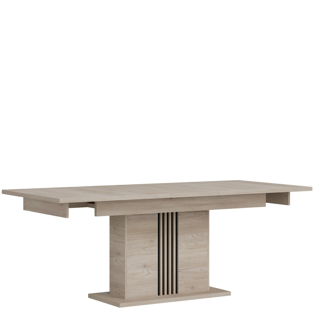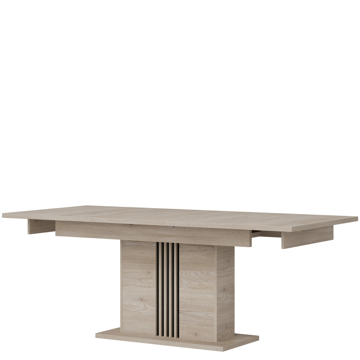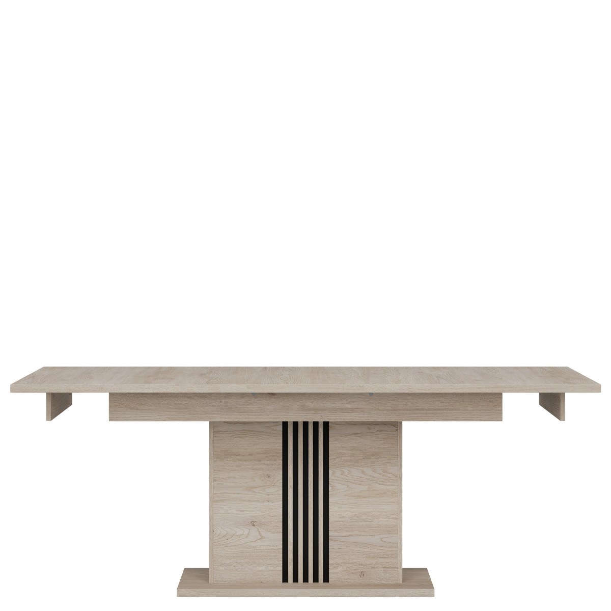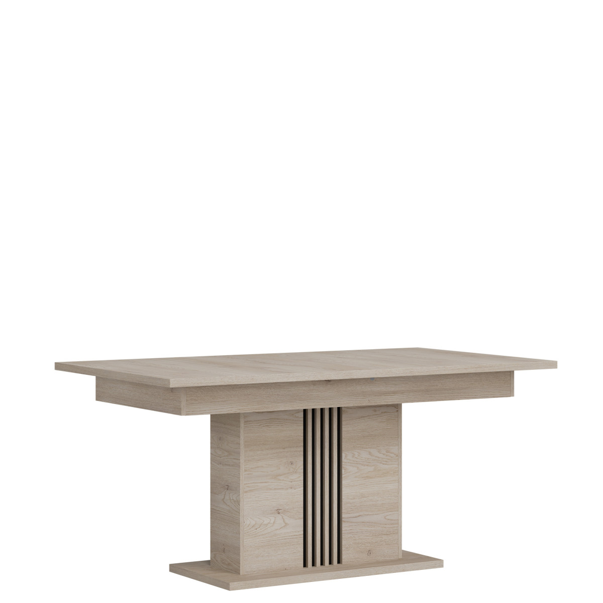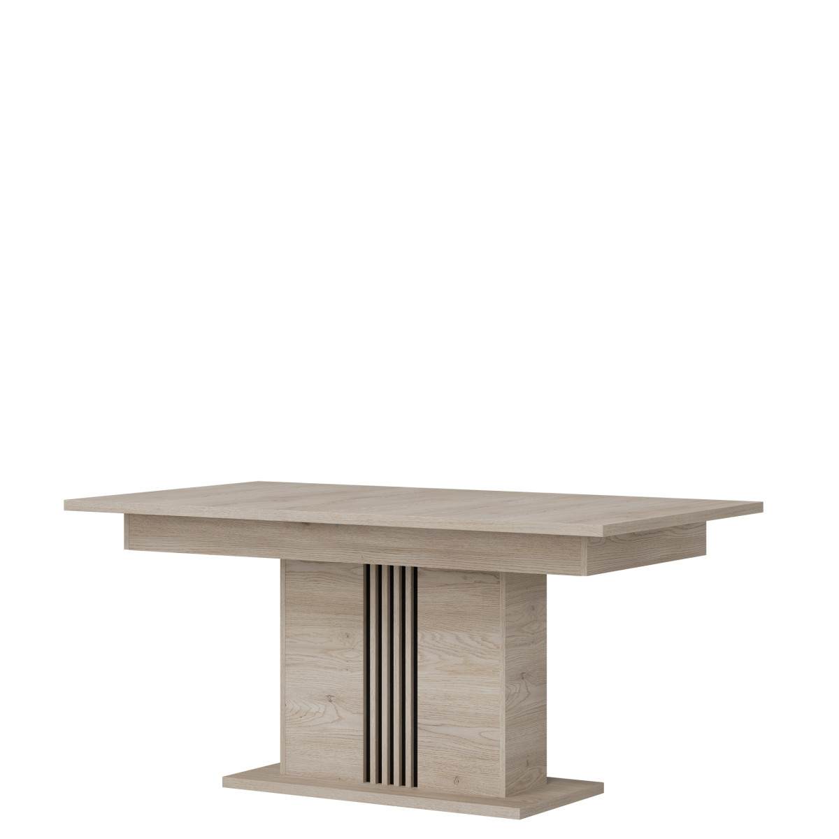 Extendable YES Number of inserts 1 Width 90 cm Length 160 cm Length after unfolding 200 cm Height 76.5 cm Product weight with packaging 72.75 kg Manufacturer’s code / symbol ST12 Name in the b2b system EXTENDING TABLE ST12 OAK CREM COTTA/CZ set Number of product packages 3 Style UNIVERSAL Equipment Assembly instructions / assembly accessories Assembly For self-assembly Color Cremona cotta oak / Black Tabletop material / type / thickness 28 mm furniture board Frame material / type / thickness 16 mm furniture board / 28 mm furniture board Column material / type / thickness 16 mm furniture board / slats 16 mm MDF furniture board Column base material / type / thickness 28 mm furniture board Foot / material / color Non-adjustable / Furniture glide / plastic / Black