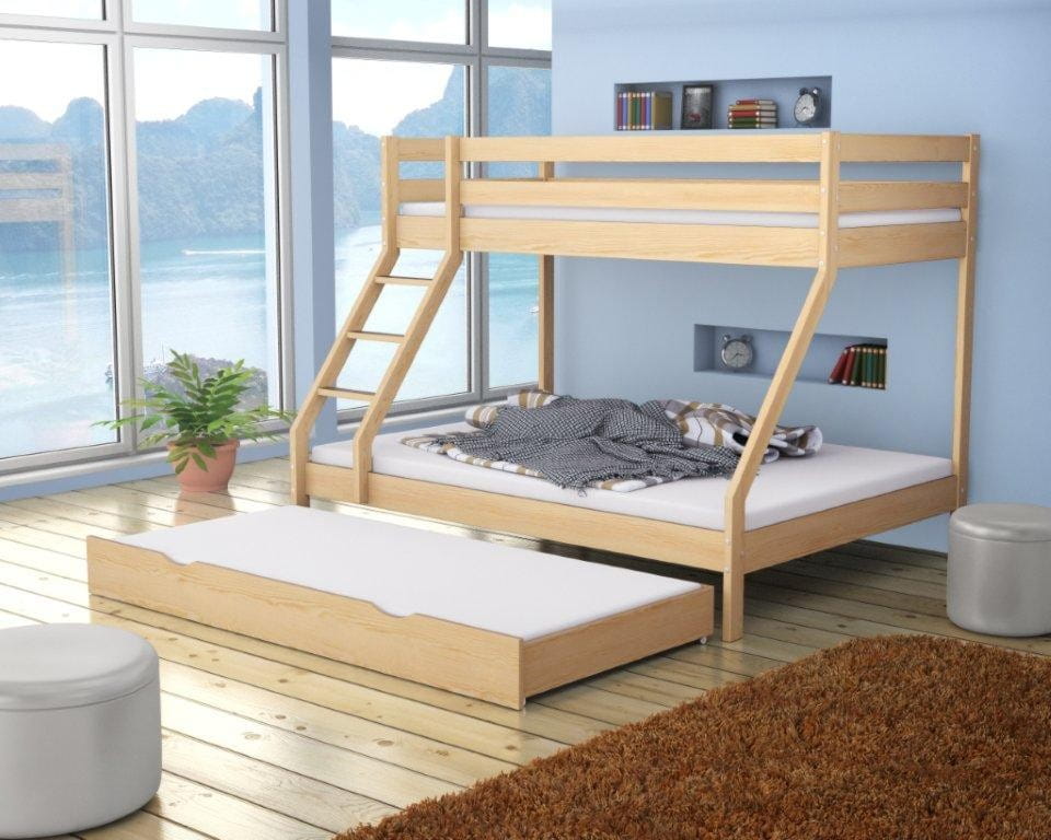The Mike bunk bed drawer provides additional storage space for a variety of items. The drawer is placed under the bottom tier of the bed. It’s most commonly used to store bedding and a blanket. However, it can also be a place for children to hide their treasures, such as toys, so they’ll be close at hand once they’re in bed. The drawer matches the size of commercially available bunk beds. It’s made entirely of oiled pinewood, which absorbs less dust. The drawer comes in a natural wood color. It’s also available in white. The drawer is made of sturdy pinewood. The drawer provides storage for bedding. Delivery / Installation: Delivered in compact boxes. The bed is easy to assemble. Assembly requires one person. Assembly instructions and mounting accessories are included.
