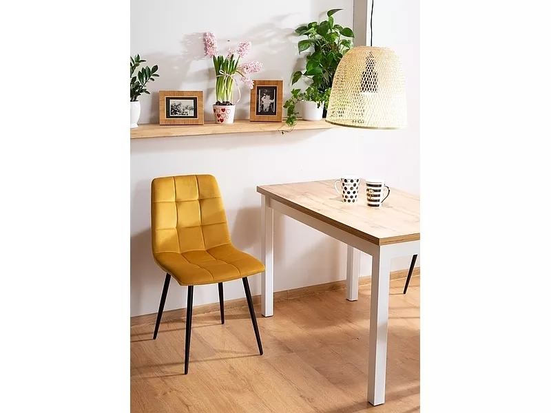 Table, top: laminated board, color: Wotan oak, frame: MDF, color: matt white
