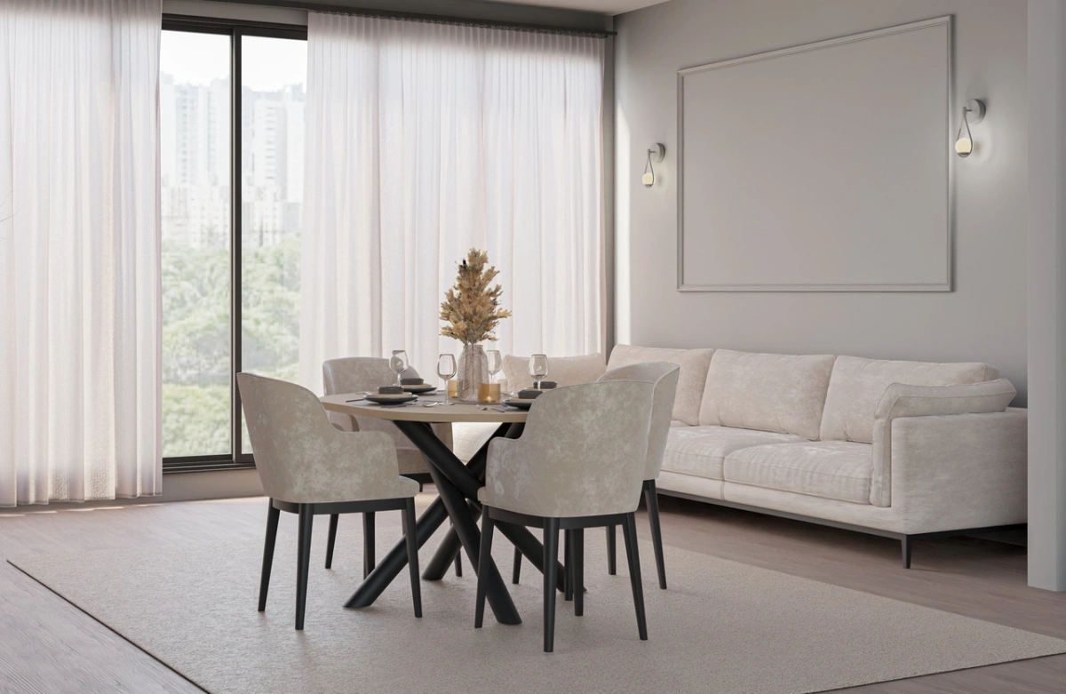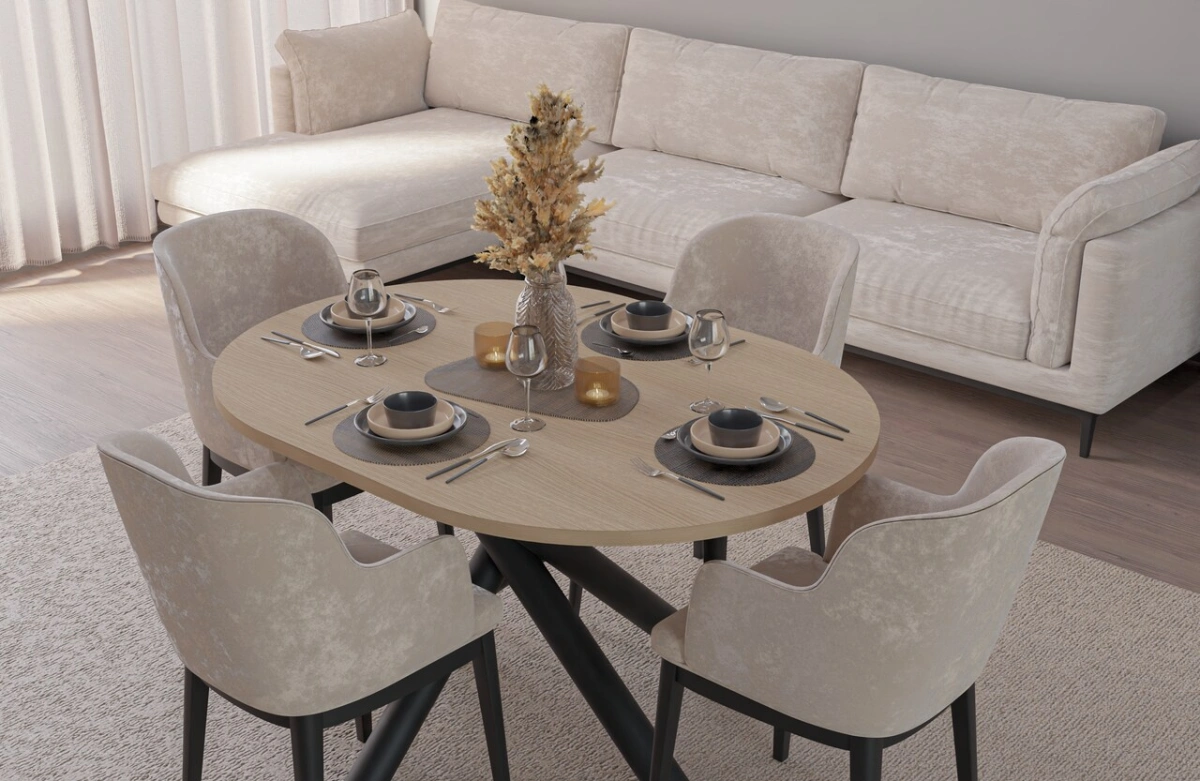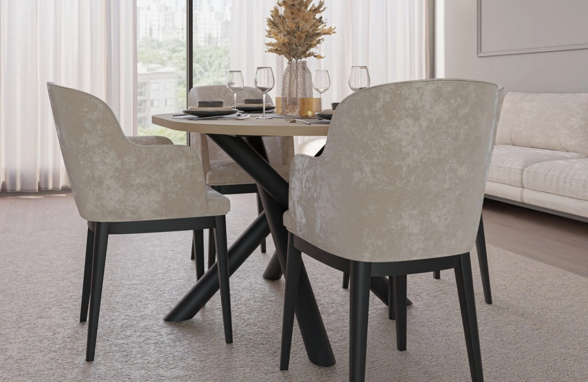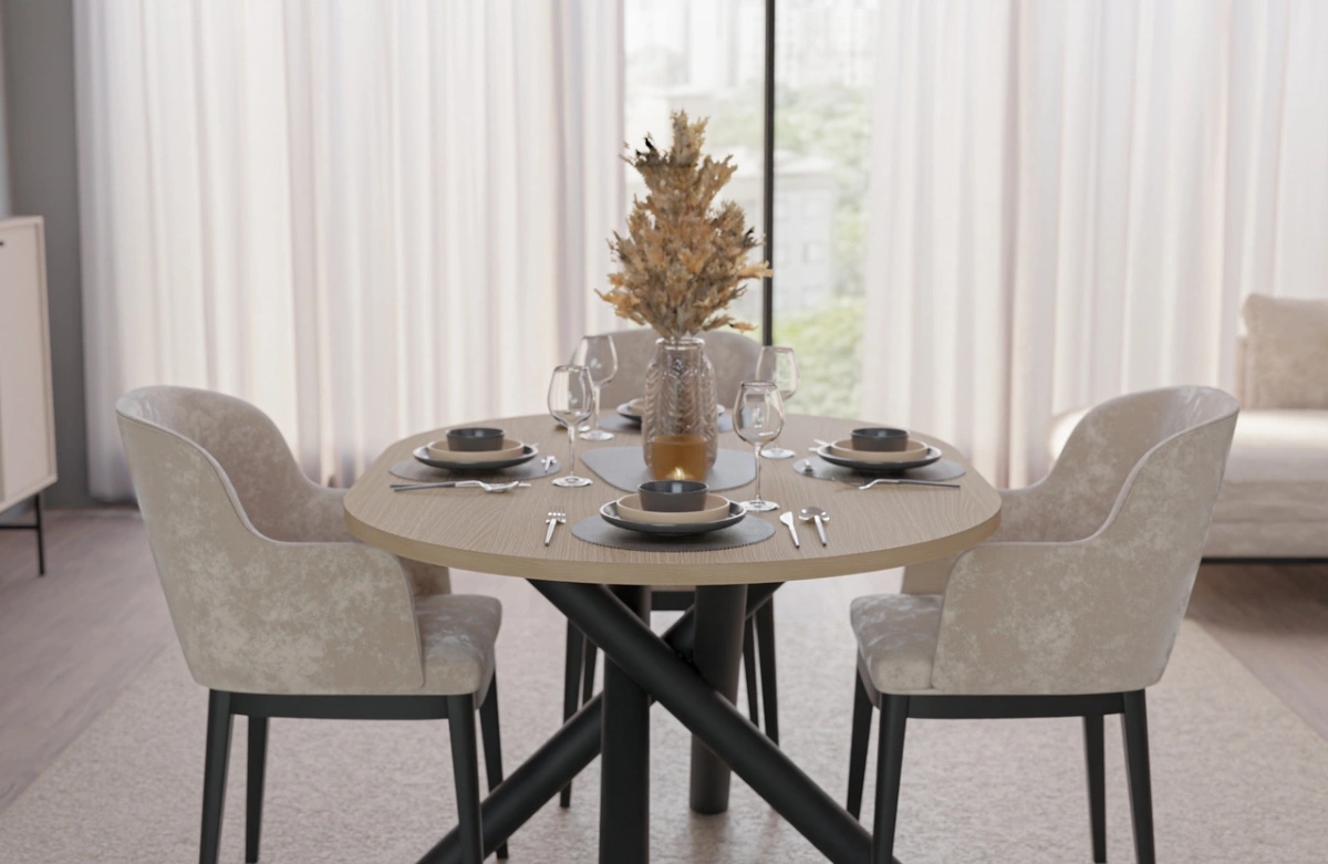 A collection of modern dining tables, the tops of which are set on decorative metal spider legs, characterized by a geometric, branching shape. Besides their aesthetic appeal, this leg shape guarantees solid support for even large tabletops. Combined with a round or oval tabletop, available in four colors, the entire piece looks incredibly stylish and elegant. OSLO tables are perfect for rooms decorated in a modern, minimalist style, but also industrial, glamorous, or loft-style.