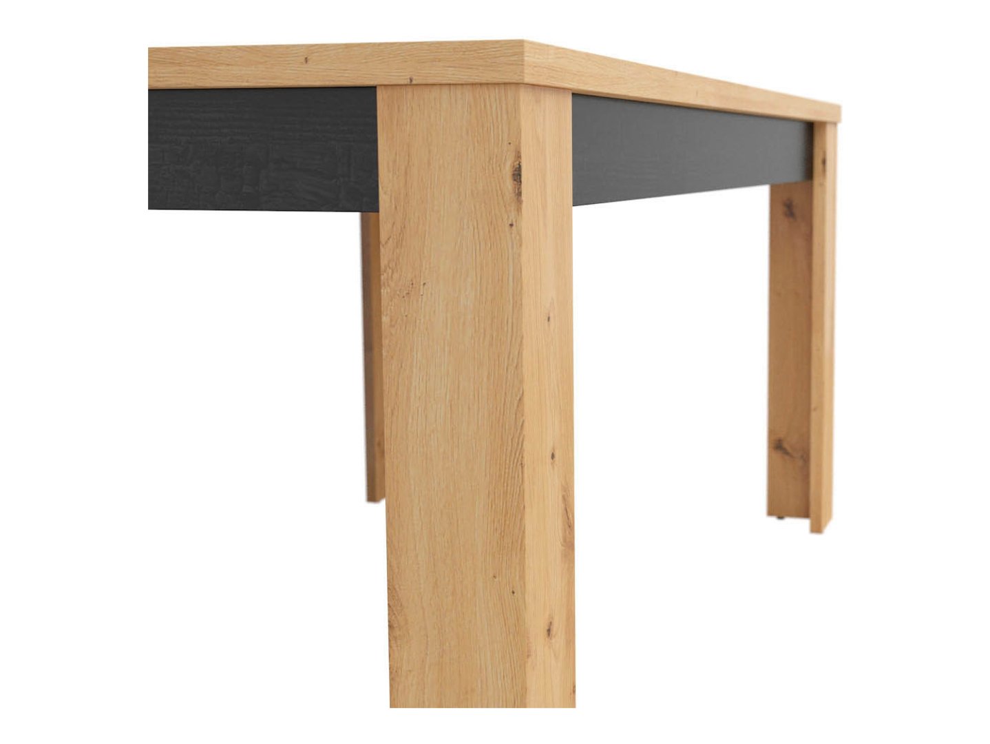 The Ostia Table – The King of the Dining Room. If you’re looking for a piece of furniture that will become the focal point of your dining room and provide a space for family gatherings over meals, the Ostia Table might meet your expectations. The Ostia collection combines simple lines, a bold body, and decorative details that give the furniture a solid character. The Ostia table is perfect for the dining room, living room, or a space that connects the kitchen and living room, creating a space for shared meals. Its extendable tabletop, measuring 160 cm long and 90 cm wide, can be extended with an extension, providing additional seating for two. The Ostia collection also stands out for its unique color selection. The tabletop and legs are finished in artisan oak, which is broken up by a black oak frame strip. This elegant combination echoes the other elements of the collection, creating a cohesive look. The Ostia table is solidly constructed, with L-shaped legs, ensuring stability and comfort. This table is an essential element of the dining room, but it can also find a place in the living room. The Ostia collection offers many arrangement possibilities, so you will surely find the right composition for your interior.
