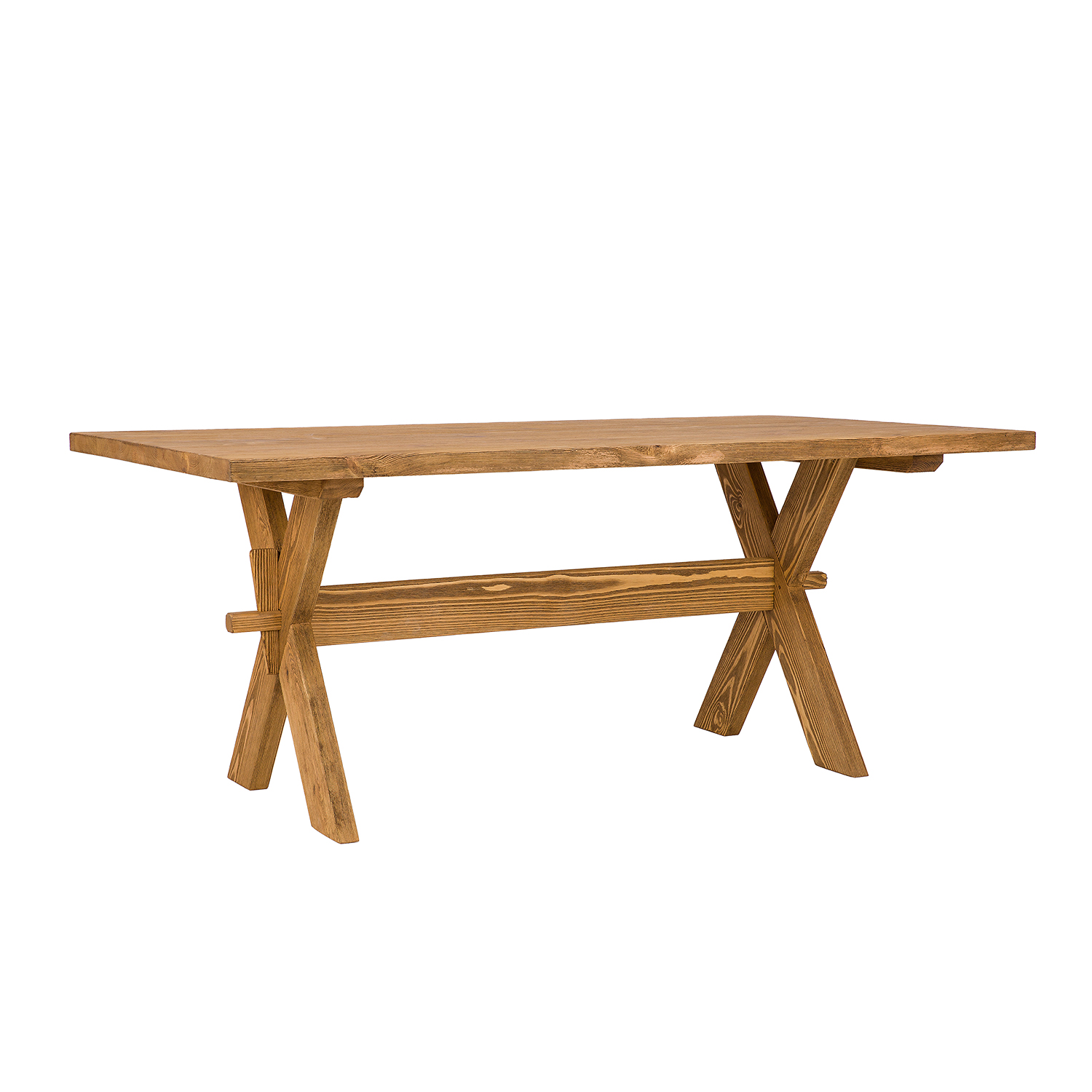 The ST716 wooden table with cross legs. Designed in a rustic style, it is made entirely of solid pine. This solid and robust pine table boasts a durable and reliable construction. It consists of cross legs and a reinforcing beam running the entire length of the table. The waxed table stands out above all for its very high level of stability and meticulous attention to detail, ensuring it is fully functional and comfortable in everyday use. The waxed ST716 table will add a unique atmosphere to any interior, full of warmth and a family atmosphere.
