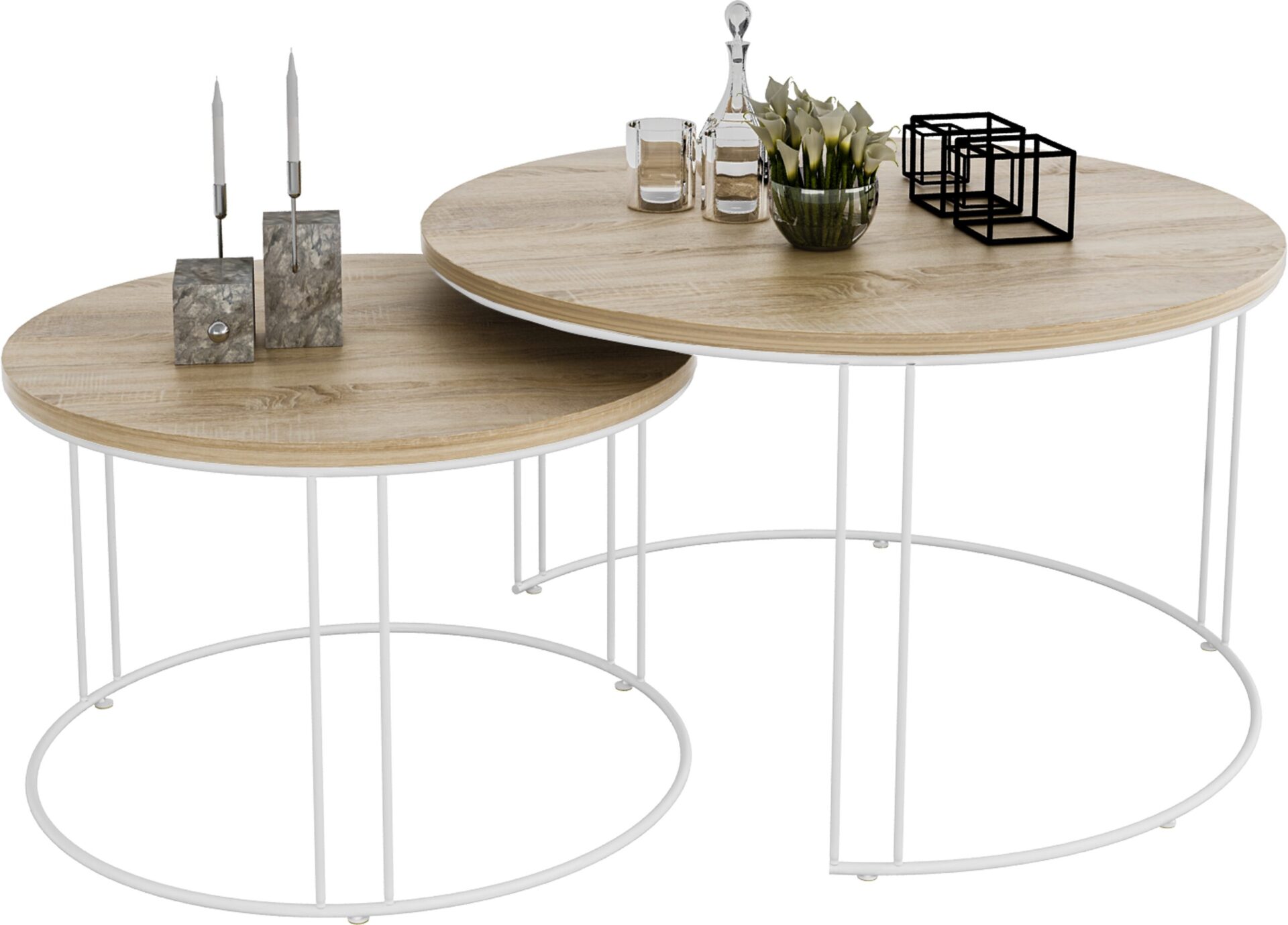 The ETTA coffee table set features a solid, sturdy wire frame and a laminated board top. ETTA is the perfect place to relax with a cup of coffee. Its simple, yet unique design complements any interior.