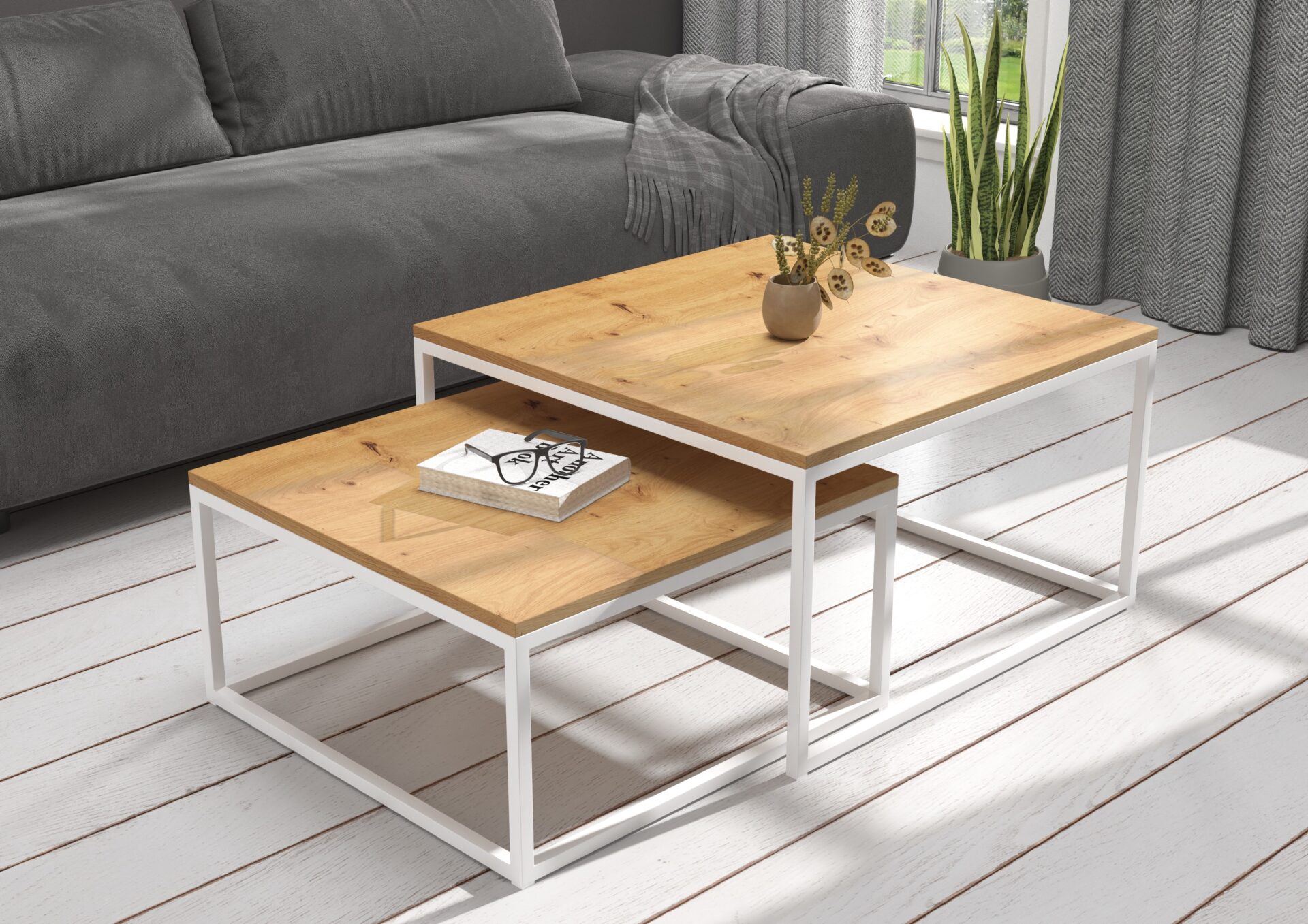 The KAMA coffee table set features a steel frame and a laminated board top. KAMA is the perfect place to relax with a cup of coffee. Its simple, yet unique design complements any interior.