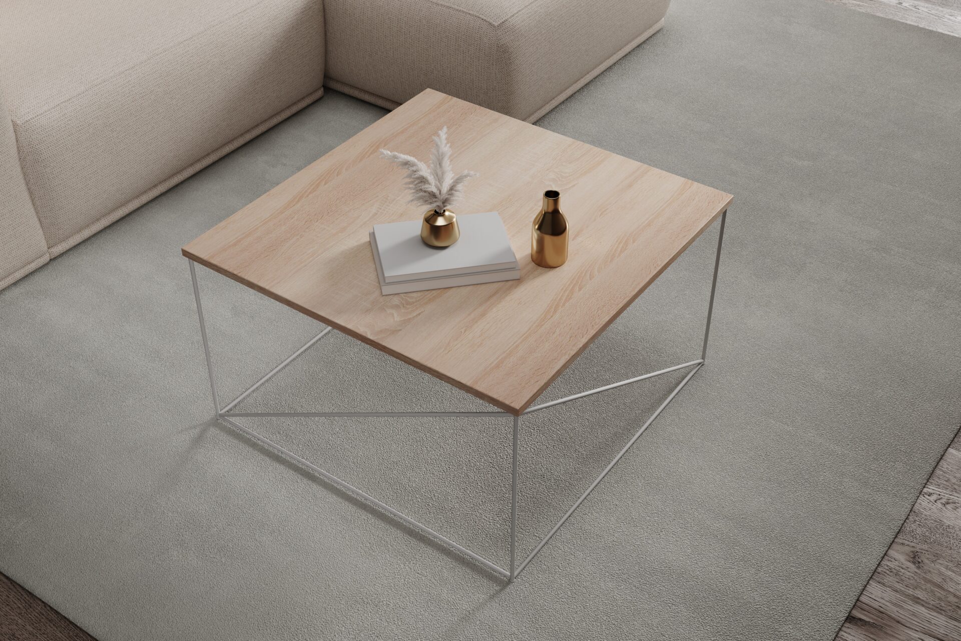 The Nelia coffee table is a unique interior piece that combines modern design with functionality. Its square top, crafted from high-quality materials, offers both aesthetic appeal and durability. Available in a variety of finishes, it perfectly complements any interior style, from minimalist to industrial. The Nelia table’s base is made of wire, giving it a light and subtle feel. Despite its delicate construction, the base is exceptionally stable and sturdy. The geometric shape of the base adds a modern touch to the table, making it a focal point of any living room. Nelia is an excellent choice for those who value elegant and functional solutions in their home. This table is perfect for both small and large spaces, adding a touch of style and sophistication.