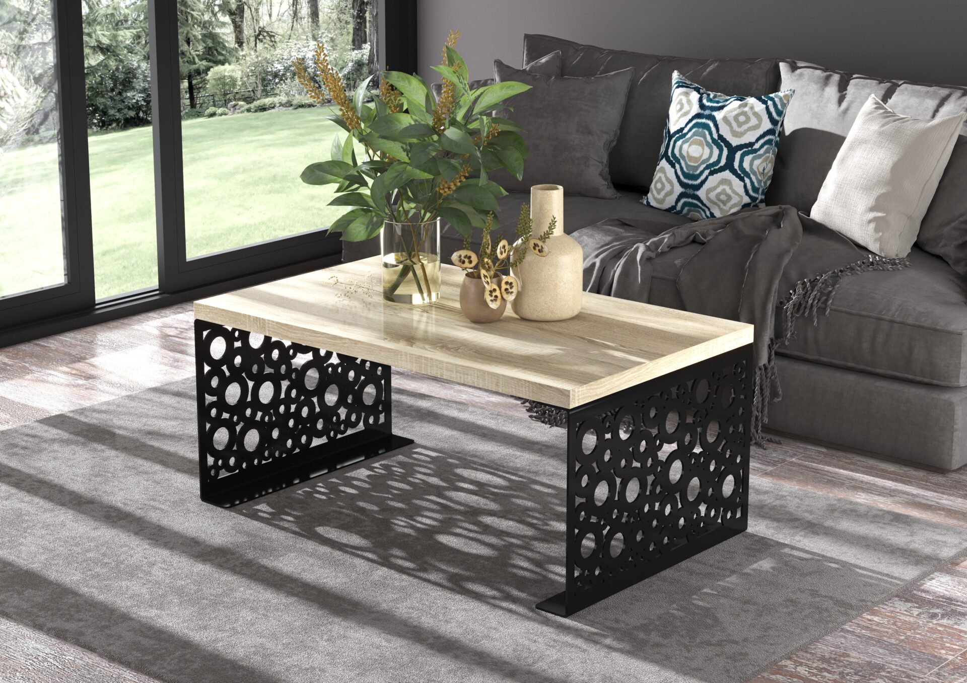 RINA kavos staliukas, 100×60, juodas/Sonoma, ADRK