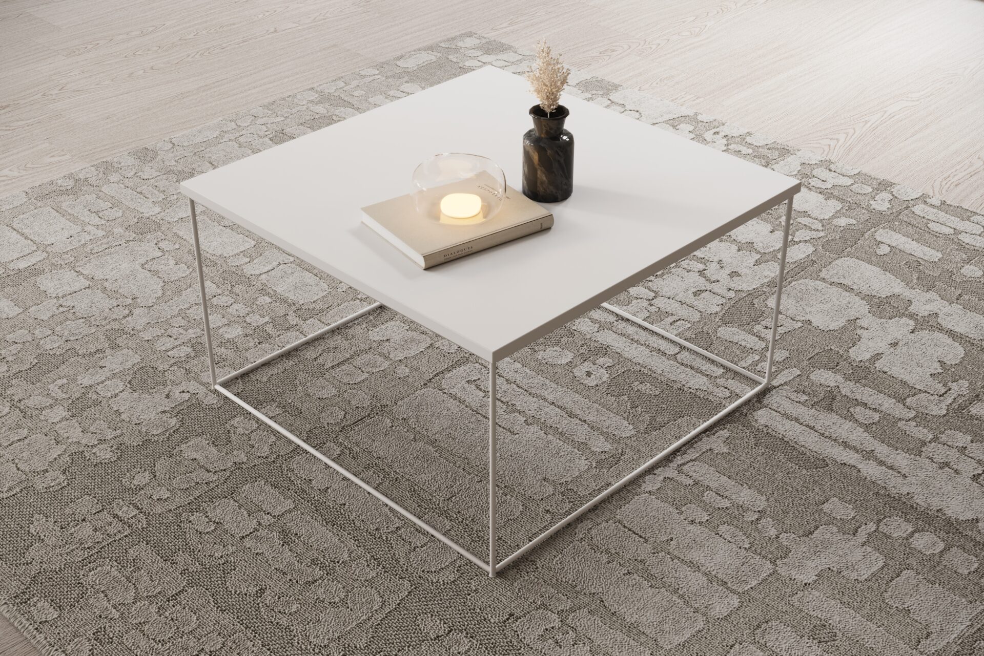The Roni coffee table is an elegant and modern piece of furniture that will fit perfectly into any contemporary interior. It features a square top made of durable laminated board, which is scratch-resistant and easy to keep clean. The laminate is available in various finishes, such as imitation wood, concrete, or solid color, allowing the table to complement a variety of interior design styles. The table’s base is a unique steel wire leg, which adds a lightness and industrial character. The wire is precisely formed into a geometric pattern, creating an interesting yet stable structure. The metal leg can be finished in matte black, white, or another color, further enhancing the table’s modern design. The Roni coffee table is not only functional but also aesthetically pleasing, perfect for living rooms, perfect for Scandinavian, loft, or minimalist spaces. Thanks to its universal design, the Roni will become the focal point of any interior.