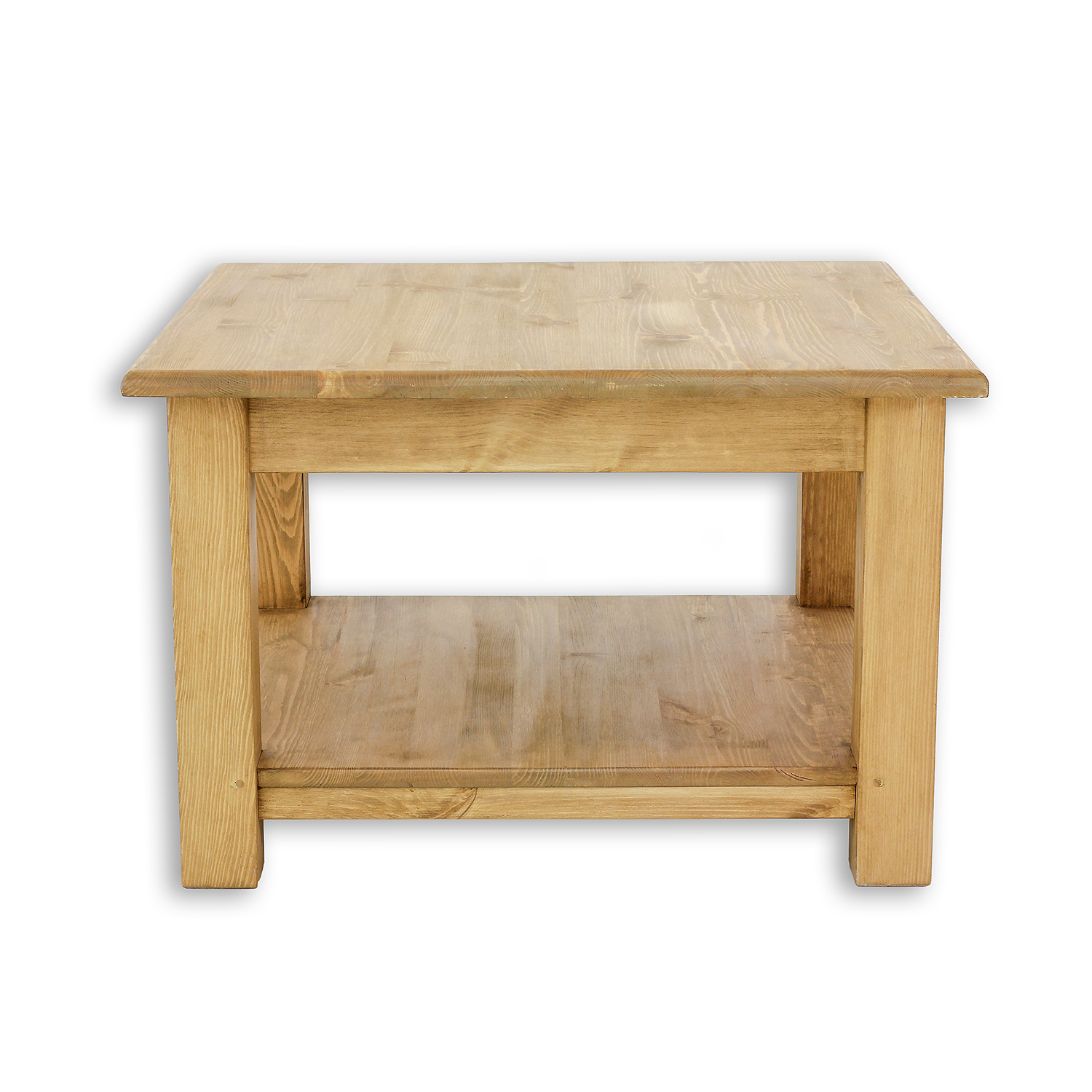 The ST709 waxed coffee table. Designed in a rustic style, it’s crafted entirely from solid pine. It’s an essential piece for any stylishly decorated interior. Its ergonomic shape and sturdy construction provide ample space for comfortably placing plates with snacks or cups of hot tea. The table features thick, straight legs measuring 8cm x 8cm and a shelf for storing handy items, magazines, or books. The visible grain highlights the beauty of the natural wood. Handcrafted metal hinges and handles with an aged finish are used in its construction. The ST709 coffee table will add a unique atmosphere to any interior, full of warmth and a homely atmosphere.