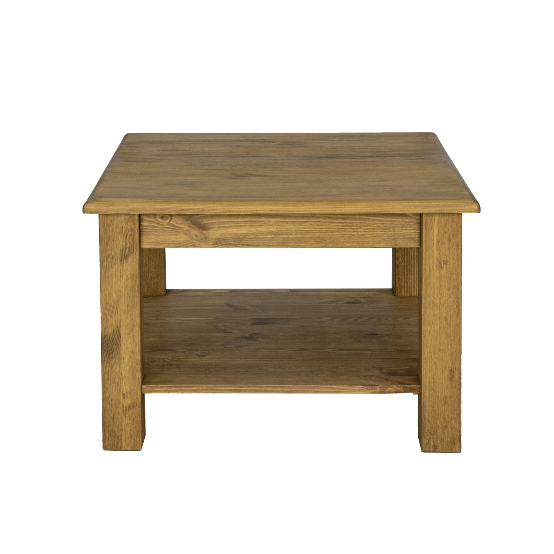 The ST709 waxed coffee table. Designed in a rustic style, it’s crafted entirely from solid pine. It’s an essential piece for any stylishly decorated interior. Its ergonomic shape and sturdy construction provide ample space for comfortably placing plates with snacks or cups of hot tea. The table features thick, straight legs measuring 8cm x 8cm and a shelf for storing handy items, magazines, or books. The visible grain highlights the beauty of the natural wood. Handcrafted metal hinges and handles with an aged finish are used in its construction. The ST709 coffee table will add a unique atmosphere to any interior, full of warmth and a homely atmosphere.
