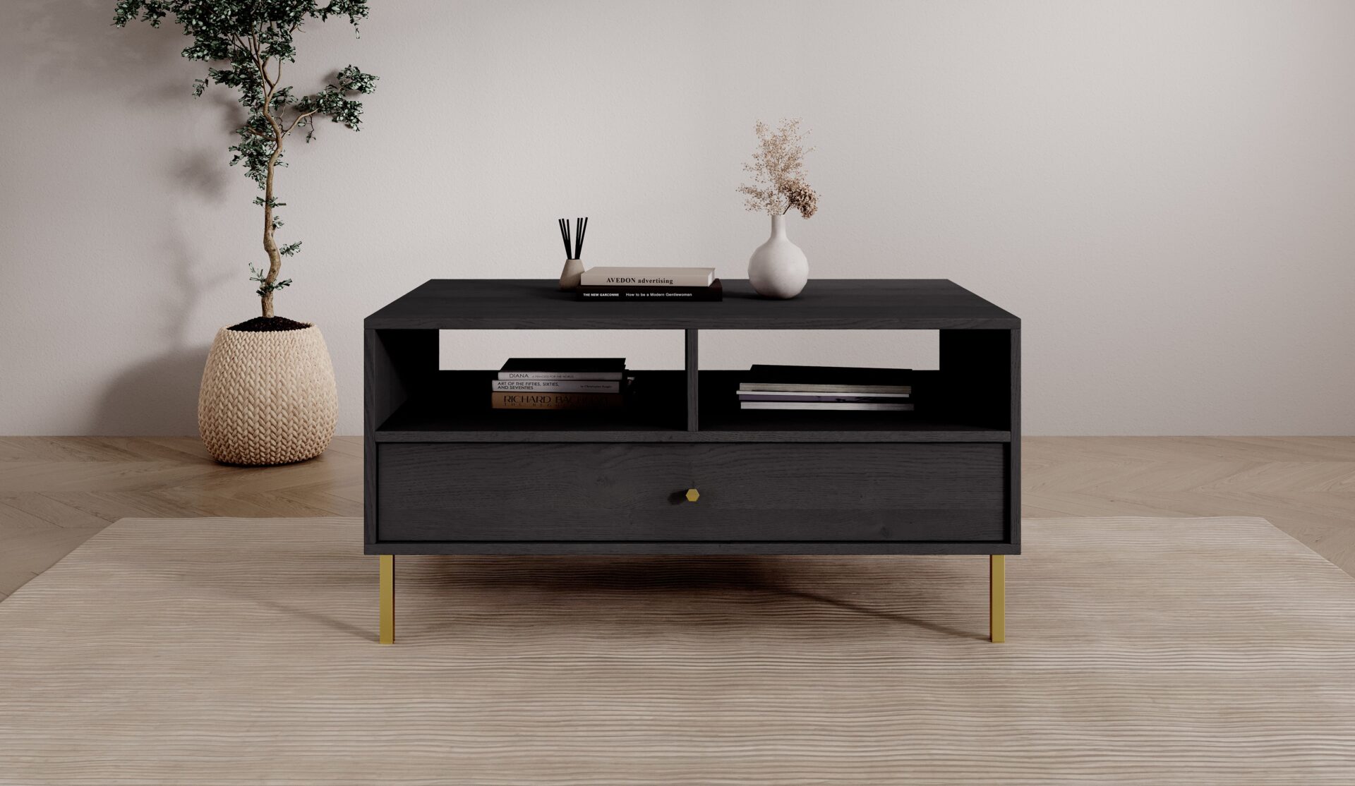 The Tili coffee table is an elegant piece of furniture with a modern design that will blend seamlessly into a variety of interior designs. Its tops are available in three sophisticated colors: eucaliptus, black, and sand beige, allowing it to perfectly complement your living room decor. The eucaliptus color introduces a touch of nature and freshness to the interior, black accentuates elegance and timelessness, while sand beige adds warmth and subtlety. The table’s construction is made of high-quality materials, ensuring durability and stability. The Tili coffee table combines functionality with aesthetics, perfectly complementing both modern and classic interiors.