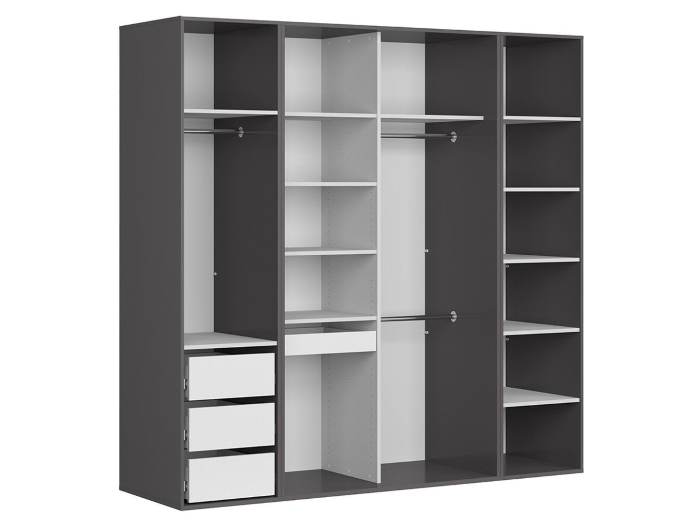 Product code F57-SZAFA_ZESTAW_139-GF/GF/CAP Symbol ZM EAN Width 220 cm Depth 66 cm Height 218 cm Collection Flex Color graphite/graphite/gloss black Shade black Style modern Material laminate Number of doors 4-door Number of drawers 3-drawers Handle with handles Lighting optional Manufacturer Black Red White Type of furniture Wardrobes VAT 23% EAN 5906123847810