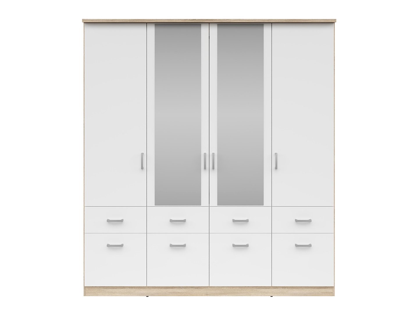 Keturių durų spinta su šešiais stalčiais ir veidrodžiu BRANDO 4, Sonoma ąžuolas/tekstilė/balta