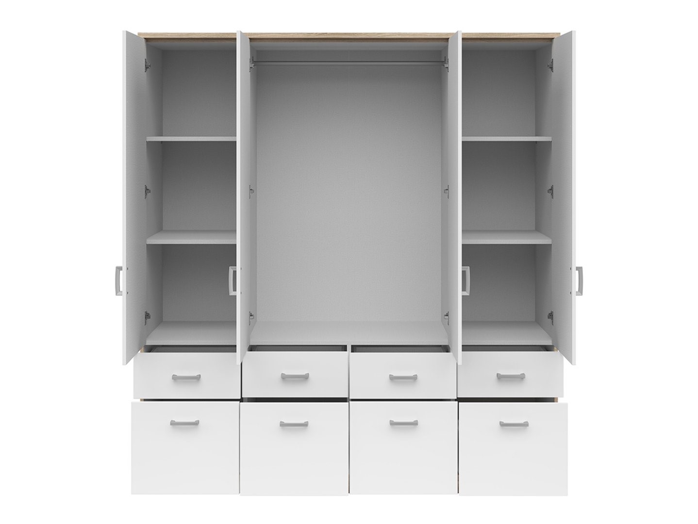 Product code F80-SZF2L2D8S-DSO/TX/BI Symbol ZM EAN Width 181 cm Depth 58 cm Height 199 cm Collection Brando Color sonoma oak/textil/white Shade light wood Style modern Material laminate Number of doors 4-door Number of drawers 5 and more drawers Handle with handles Manufacturer Black Red White Type of furniture Wardrobes VAT tax 23% EAN 5906123851336