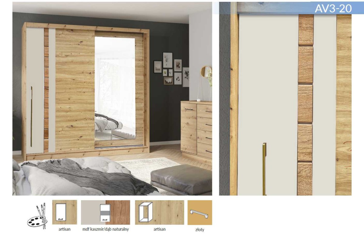 Kašmyro stumdoma spinta su veidrodžiu Avantgarde AV3-200 cm