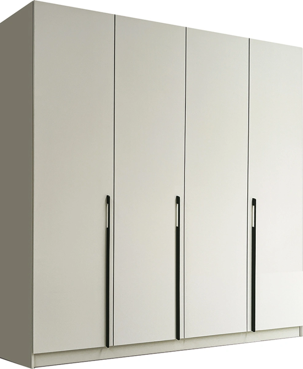 Denver 200 cm cashmere wardrobe with black handles – features shelves on the outer fronts and a clothes rail in the middle.