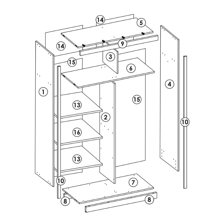 Molto 150 Loft Wardrobe – features a shelf on one side, a rail underneath, and shelves on the other, with a mirror on the front.