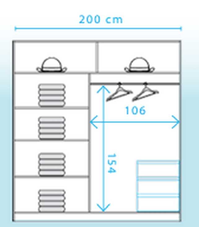 Avantgarde AV1 sliding wardrobe with mirror – features shelves on one side, a rail on the other, and a mirror on the front.