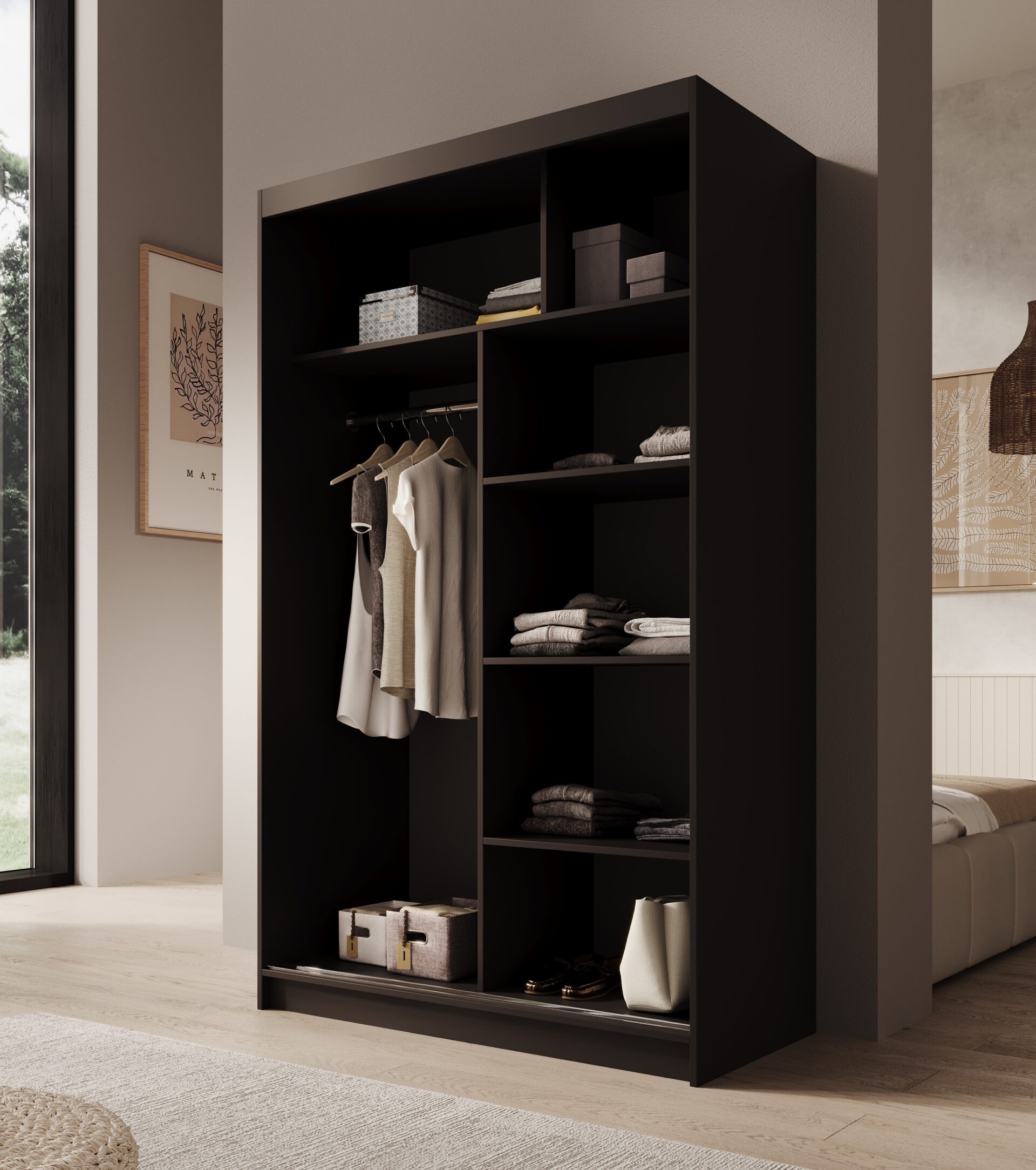 The 120 cm wide Castello wardrobe is an elegant and functional piece of furniture that will perfectly complement modern interiors. Its minimalist design and diverse color options allow it to complement a variety of interiors. The 120 cm Castello wardrobe is the perfect combination of style and practicality – a perfect choice for a bedroom, dressing room, or hallway!