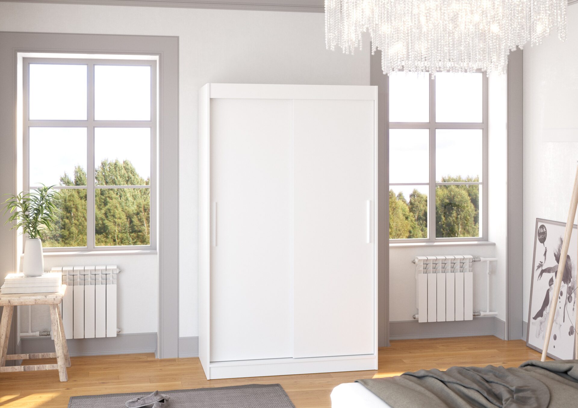 The COLLIN sliding wardrobe is the perfect way to organize your space. It features spacious shelves and a hanging rail for dresses, suits, outerwear, and shirts. Because the wardrobe is sliding, you don’t need to create extra space for the doors, making it a perfect solution for a small room or narrow hallway. An additional advantage is the option to purchase attractive LED lighting, which will add a touch of charm to both the wardrobe and the room.