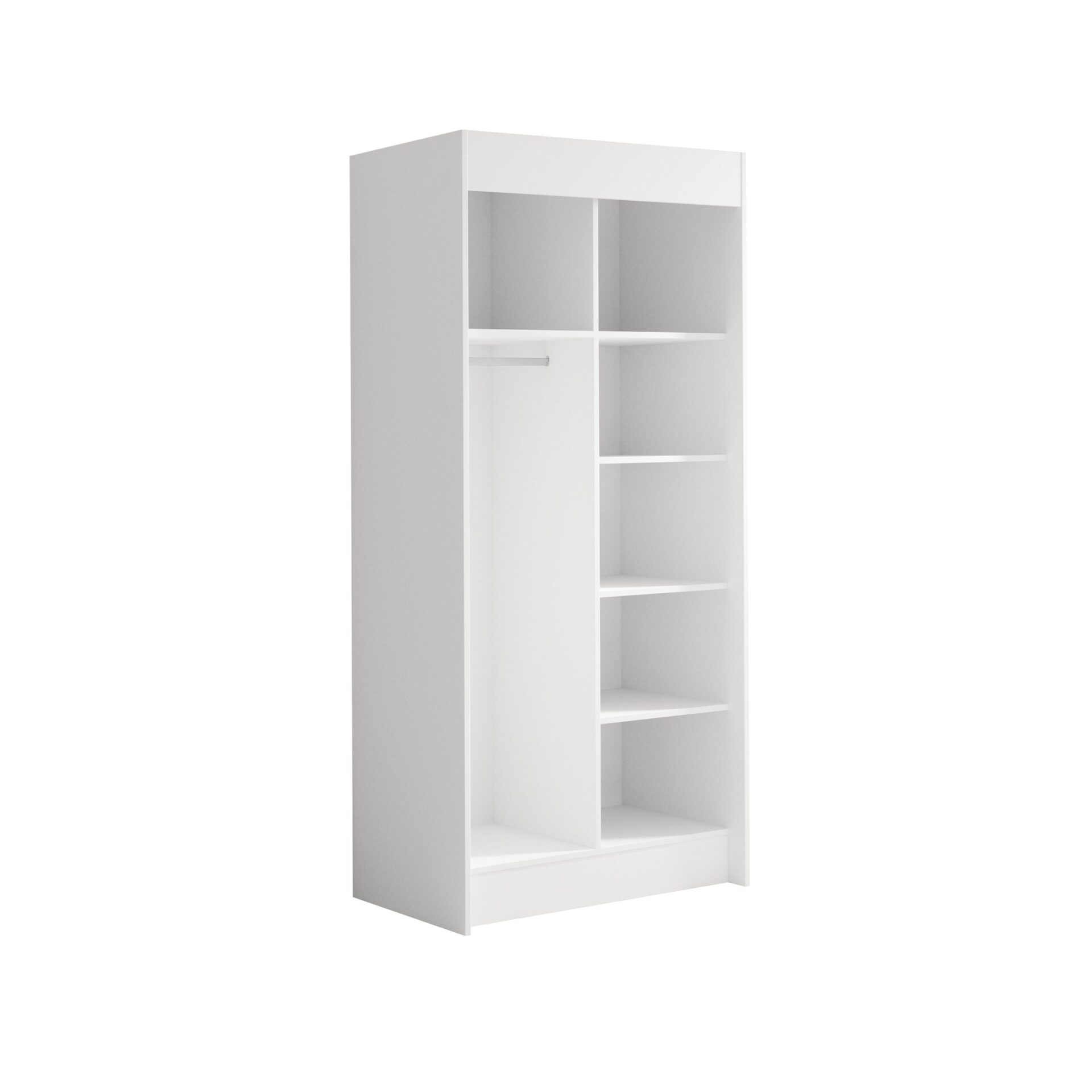 The KARIEN sliding wardrobe is the perfect way to organize your space. It features spacious shelves and a hanging rail for dresses, suits, outerwear, and shirts. Because the wardrobe is sliding, you don’t need to create extra space for the doors, making it a perfect solution for a small room or narrow hallway.