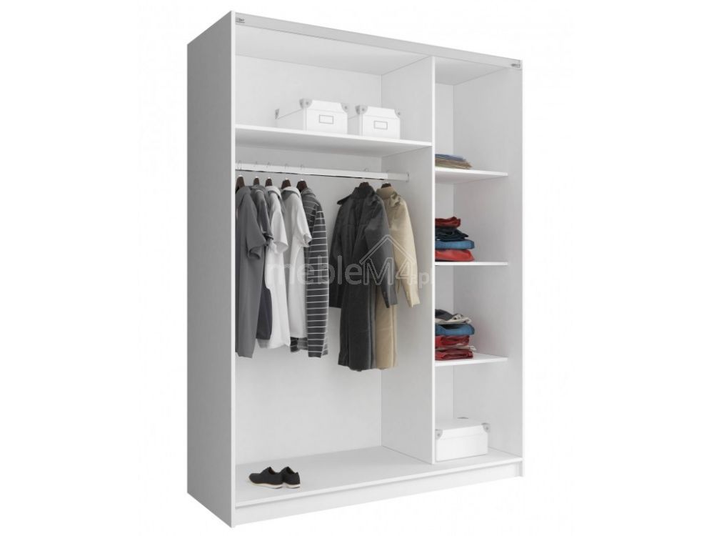The MIKA III wardrobe is made of high-quality 16 mm laminated board with ABS veneered edges. The base is made of MDF. It features a hanging rail and numerous shelves – the interior layout is shown in the photo. This wardrobe is perfect for storing clothes.