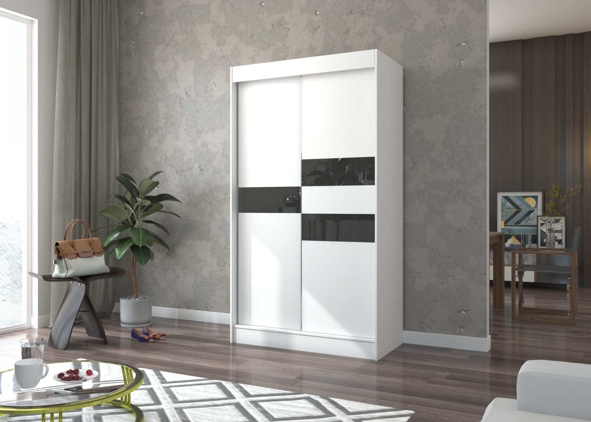The BATIA sliding wardrobe is the perfect way to organize your space. It features spacious shelves and a hanging rail for dresses, suits, outerwear, and shirts. Decorative lacobel accents on the front give the piece a unique style. Because the wardrobe is sliding, you don’t need to create extra space to open the doors, making it a perfect solution for a small room or narrow hallway.