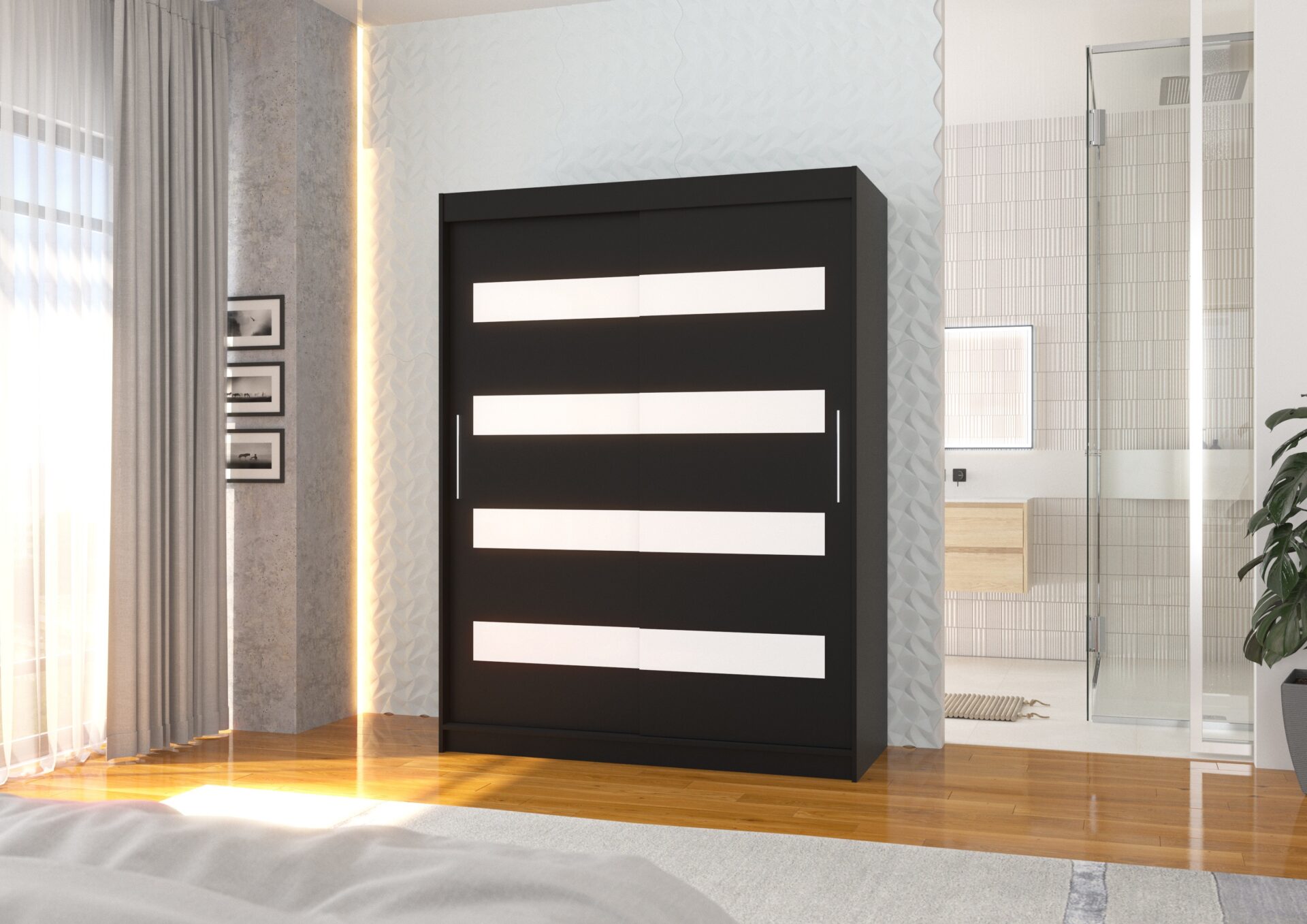 Stumdoma spinta su stumdomomis durimis MARTINEZ 150 juoda/balta Lacobel ADRK