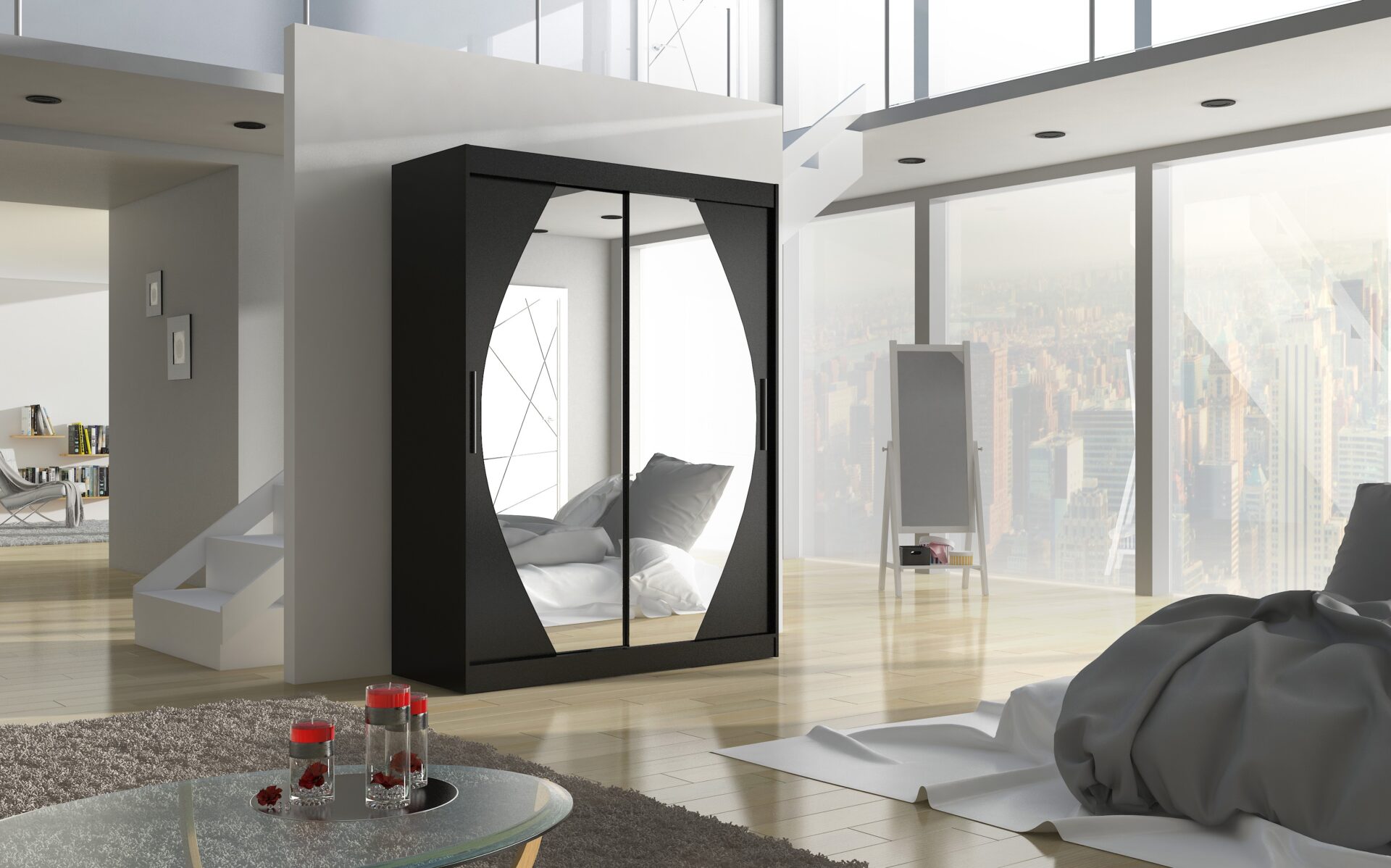 The ALEN sliding wardrobe with mirror is the perfect way to organize your space. It features spacious shelves and a hanging rail for dresses, suits, outerwear, and shirts. Mirrors are attached to the front to visually enlarge the space. Because the wardrobe is sliding, you don’t need to create extra space to open the doors, making it a perfect solution for a small room or narrow hallway.