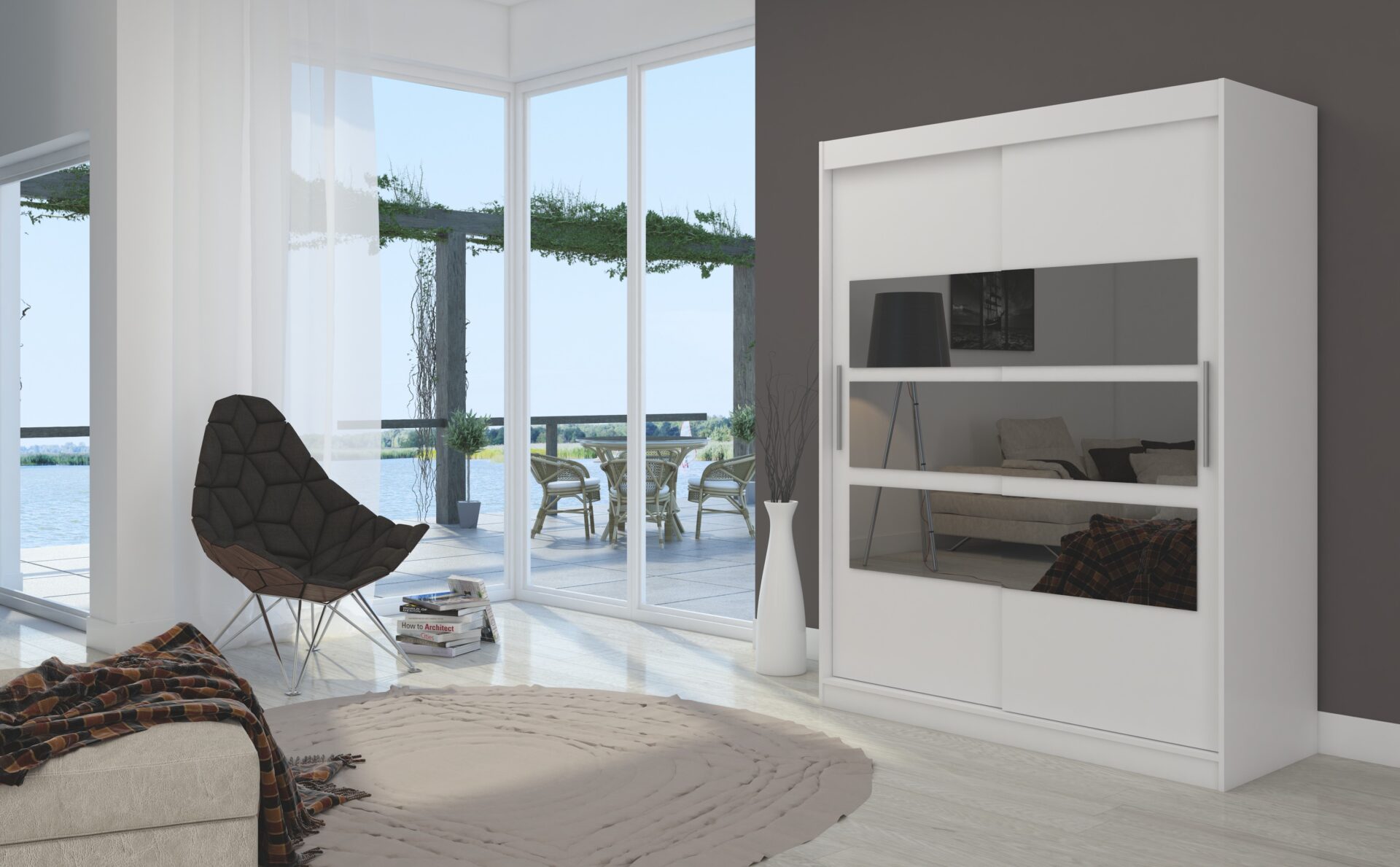 Stumdoma spinta su veidrodžiu FLORENTO 150 balta ADRK