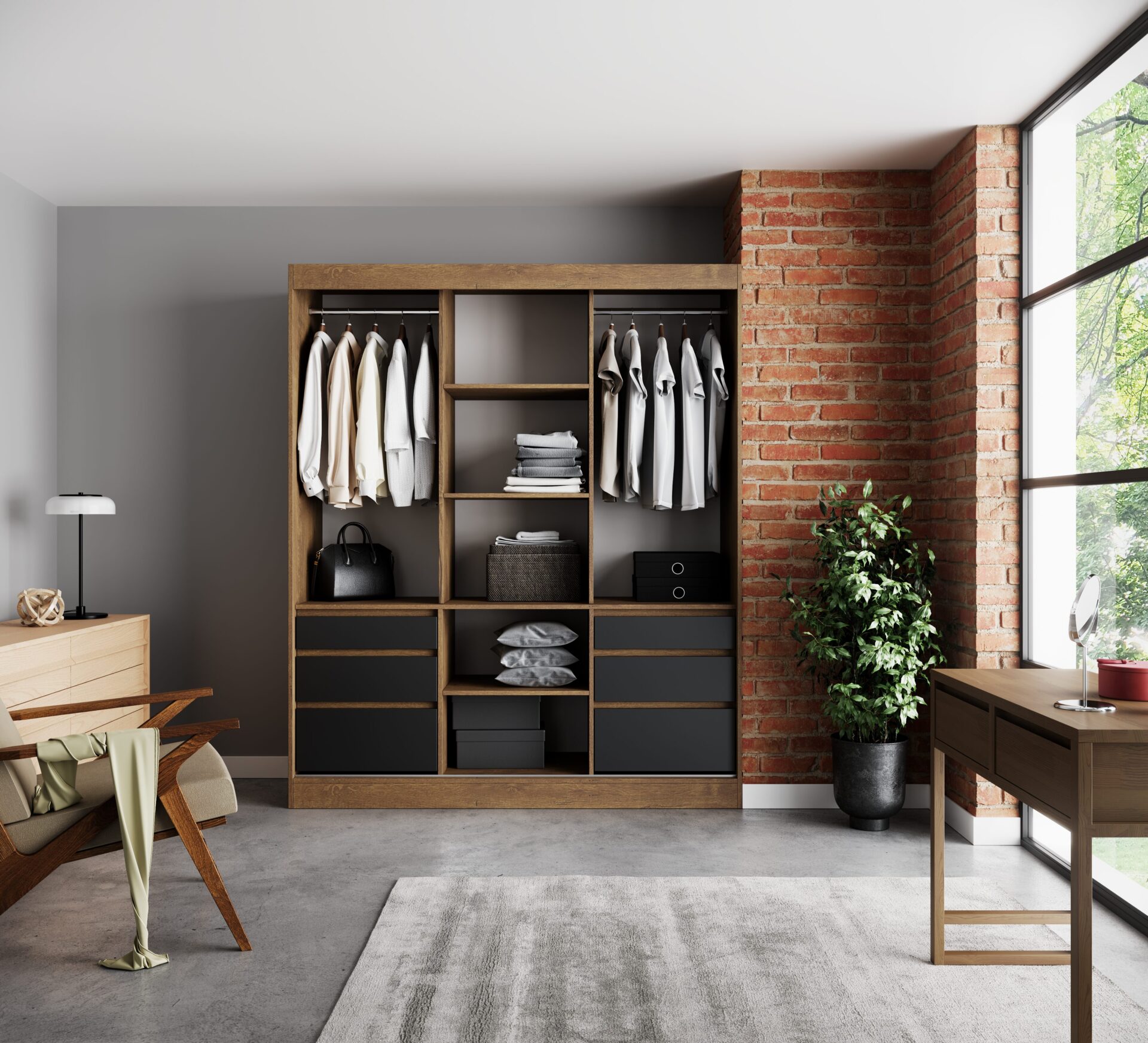 The HAIDAR sliding wardrobe is the perfect way to organize your space. It features spacious shelves, drawers, and rails for hanging dresses, suits, outerwear, and shirts. Because the wardrobe is sliding, you don’t need to create extra space for the doors, making it a perfect solution for a small room or narrow hallway.