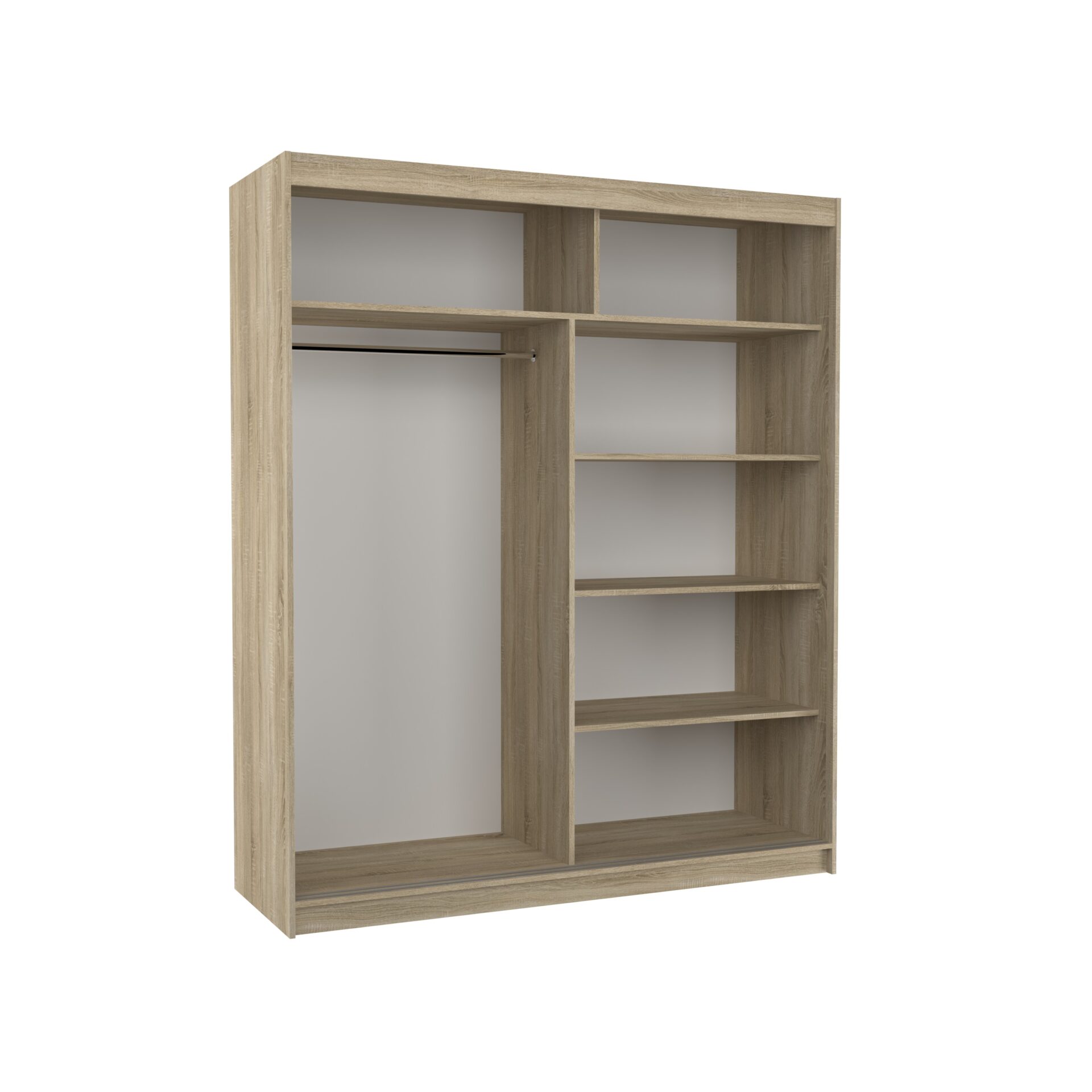 The CHARLOTTE sliding wardrobe is the perfect way to organize your space. It features spacious shelves and a hanging rail for dresses, suits, outerwear, and shirts. Mirrors on the front give the piece a unique style. Because the wardrobe is sliding, you don’t need to create extra space to open the doors, making it a perfect solution for a small room or narrow hallway. A striking feature is the striking LED lighting, which adds a wonderful charm to both the wardrobe and the room.