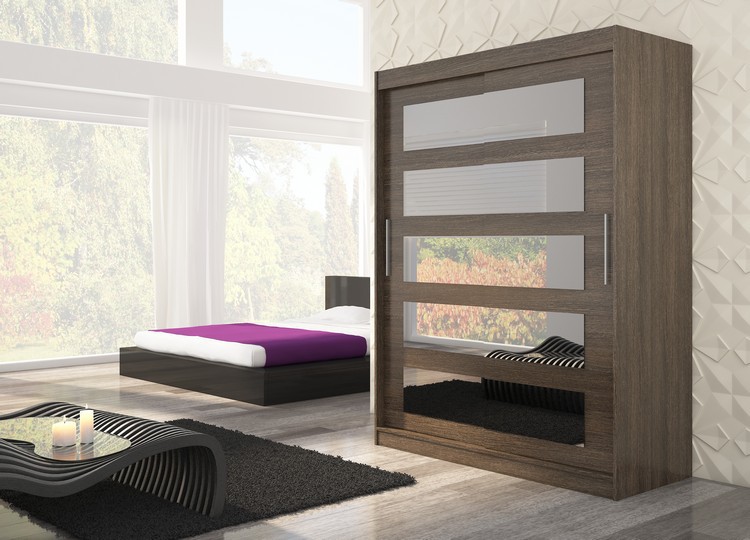 The MURANI sliding wardrobe with mirror is the perfect way to organize your space. It features spacious shelves and a hanging rail for dresses, suits, outerwear, or shirts. Smoked mirrors are attached to the front, visually enlarging the space while adding a touch of elegance. Because the wardrobe is sliding, you don’t need to create extra space to open the doors, making it a perfect solution for a small room or narrow hallway.